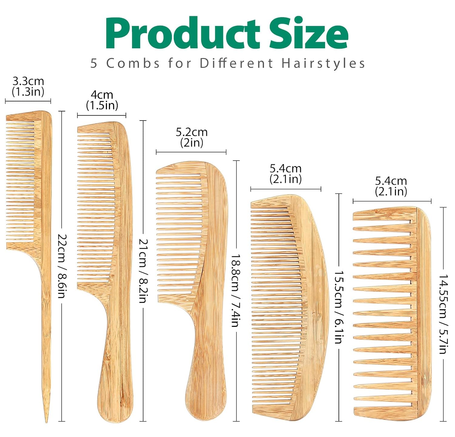 - Size: Bamboo Wide Tooth Comb is approx 14.5 x 5.4 cm/ 5.7 x 2.1 inches, Fine Tooth Combs is approx 15.5 x 5.4 cm/ 6.1 x 2.1 inches, Tail Hair Comb is approx 21.8 x 3.1 cm/ 8.6 x 1.2 inches, Wide Tooth Comb with handle is approx 18.8 x 5.4 cm/ 7.4 x 2.1inches, Fine Tooth Combs with handle is approx 21 x 3.7 cm/ 8.2 x 1.4 inches