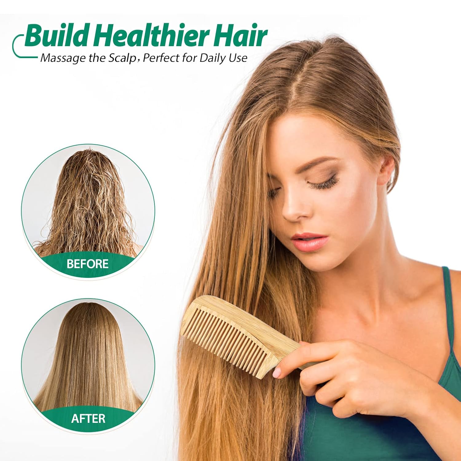 - Natural Bamboo: The combs for women and men, the material is made of natural organic bamboo. No static electricity and feels good in hand. These comb set with utilizing a unique arc grinding process, the detanglin comb comes out more rounded, smooth,ensure comb’s teeth are not very sharp,which prevents harm to the scalp and pull or break u hair