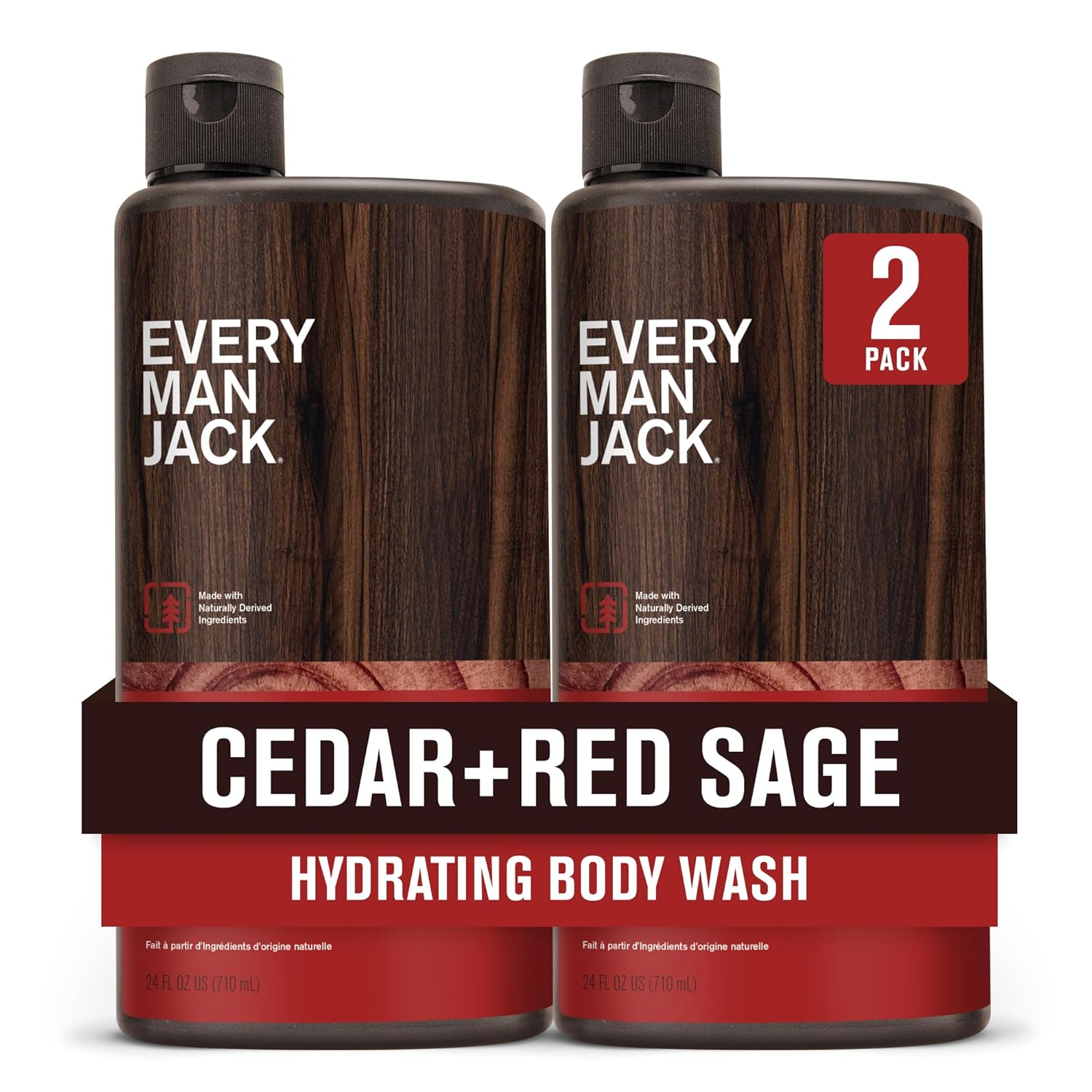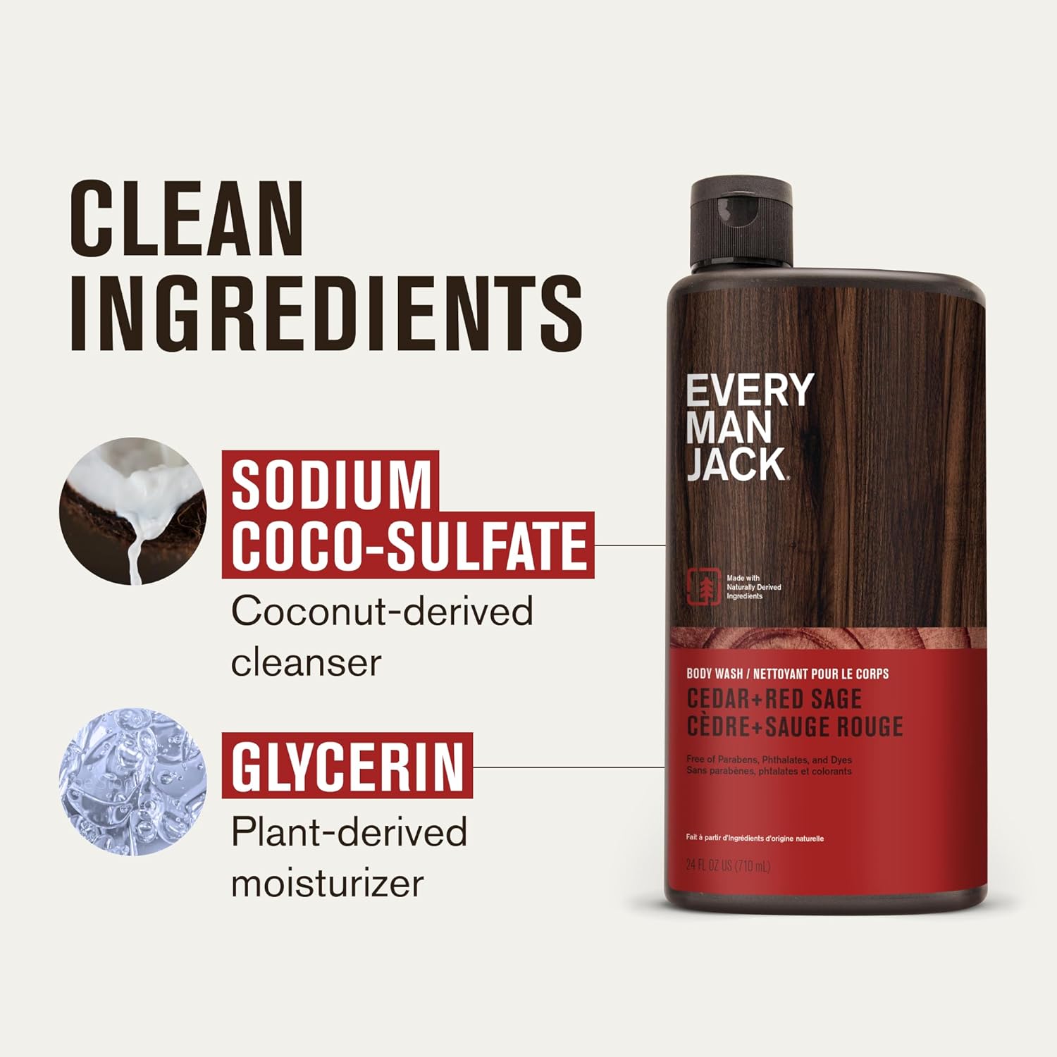 Every Man Jack Nourishing Cedar + Red Sage Mens Body Wash for All Skin Types - Naturally Derived Ingredients - Cleanse and Hydrate Skin with Coconut and Glycerin - 24oz 2 Bottles