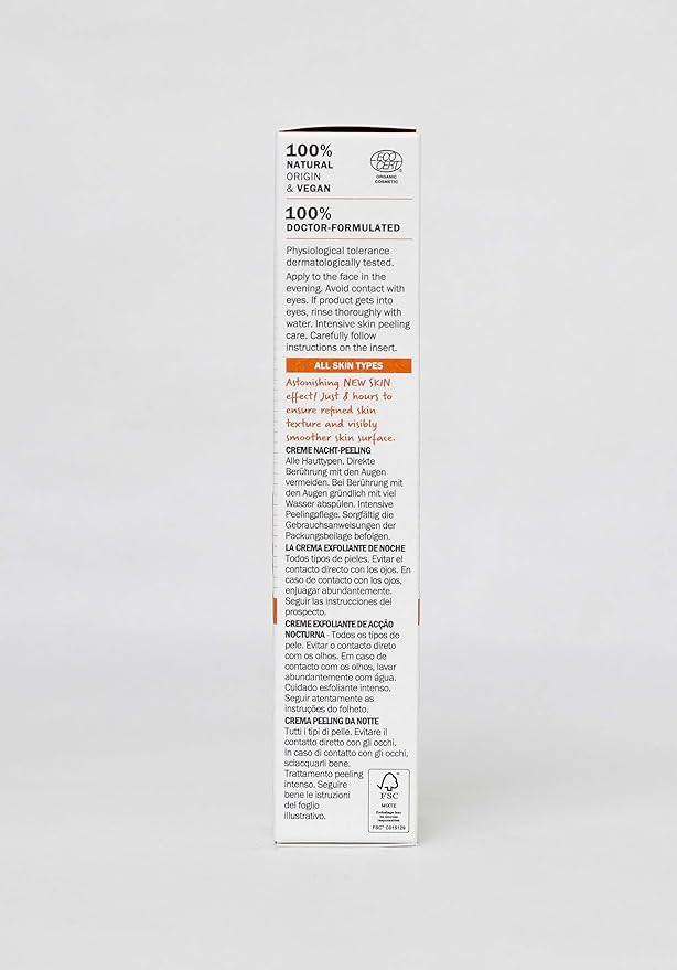 - OVERNIGHT SKINCARE MAGIC. Our peeling treatment combines gentle exfoliating ingredients, hyaluronic acid and natural vitamin C to give you smoother skin and a radiant complexion when you wake up. Noticeable effects without a costly trip to the spa.