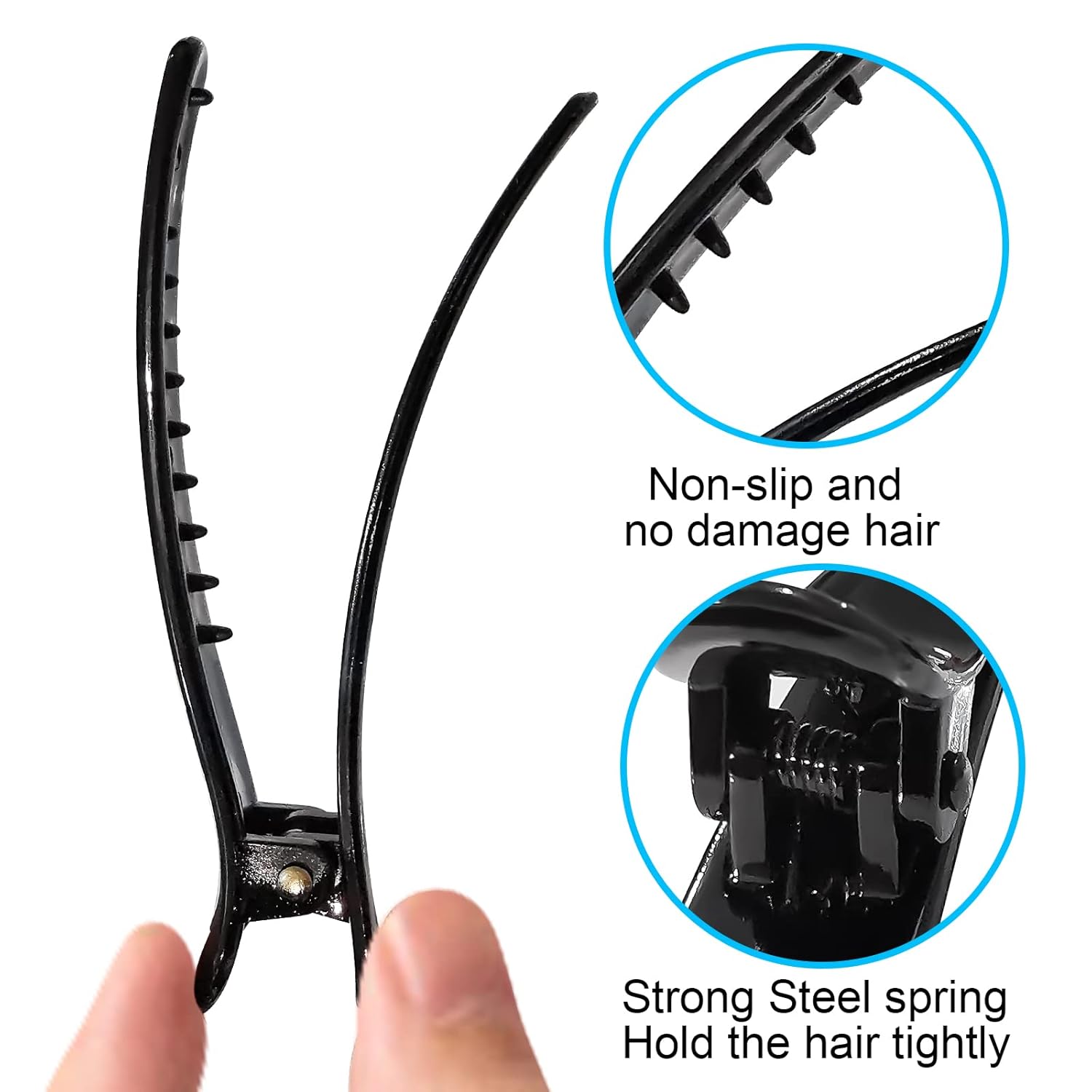 - No Slip:Non-slip grip secures the hold and prevents your fingers from slipping. Each duck billed hair clip is designed with tiny teeth on the upper part of the clip, so they don't slip and the grip is tight. This clips could hold even large sections of hair without slipping or damaging.