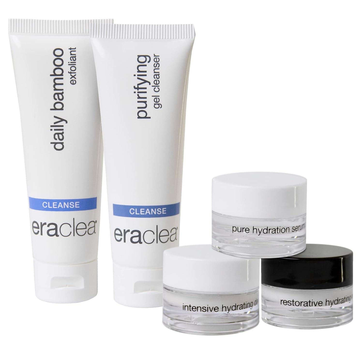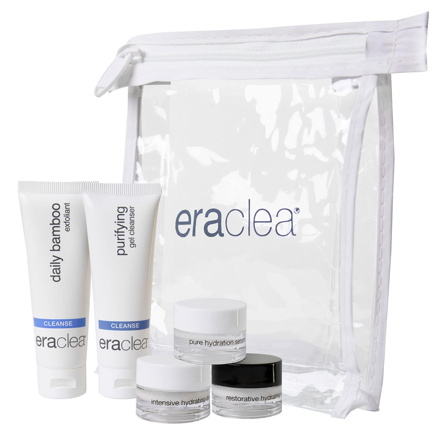 - 5 Piece Travel Size Set: Keep your skin glowing on the go with the eraclea skincare gift set, a TSA-approved 5 piece spa travel set that includes a purifying gel cleanser, bamboo exfoliant, hydration serum, day cream and restorative night cream.
