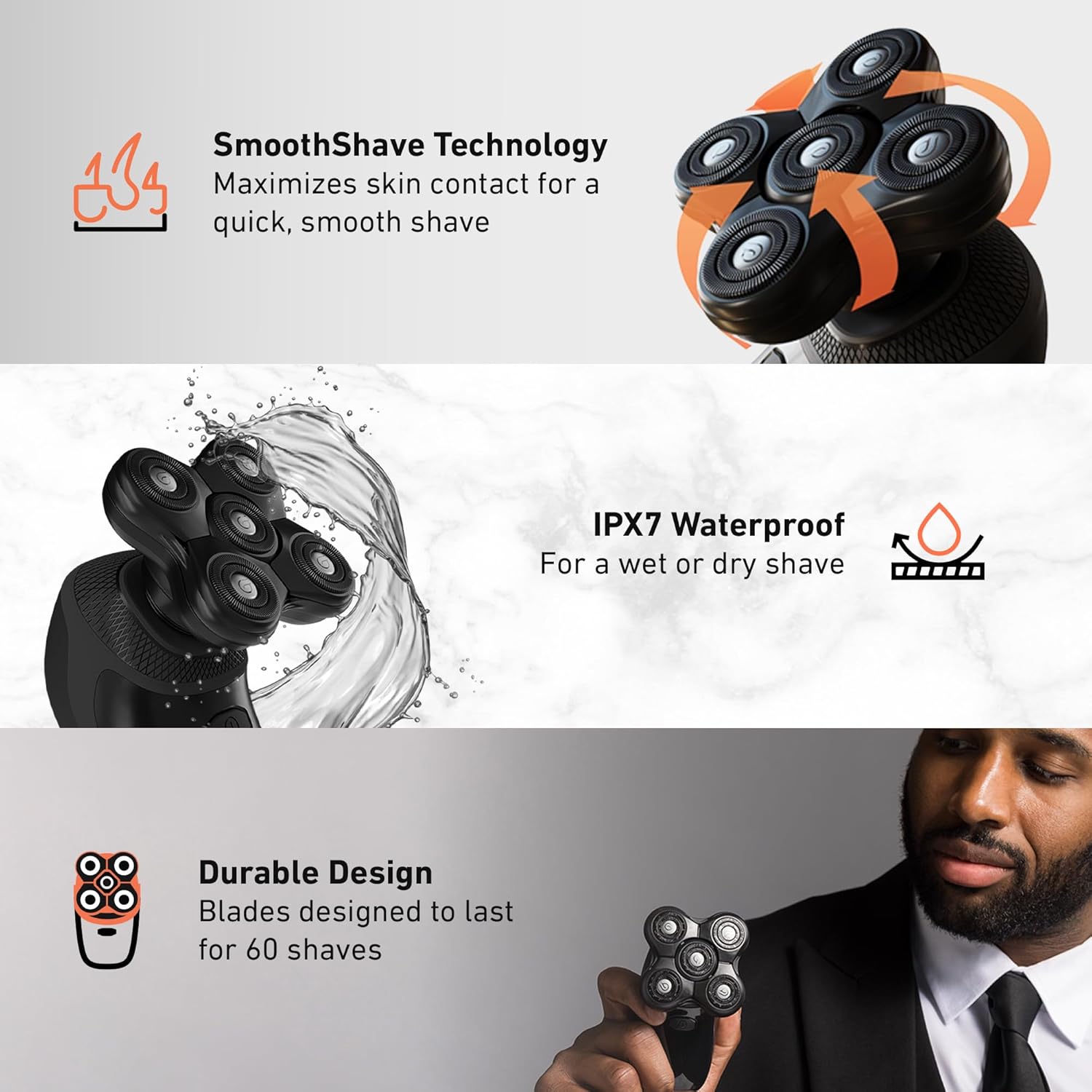 - SmoothShave Technology: Maximizes skin contact for a comfortable shave on any skin and hair type. Get a close shave without bumps, cuts, or razor burns.