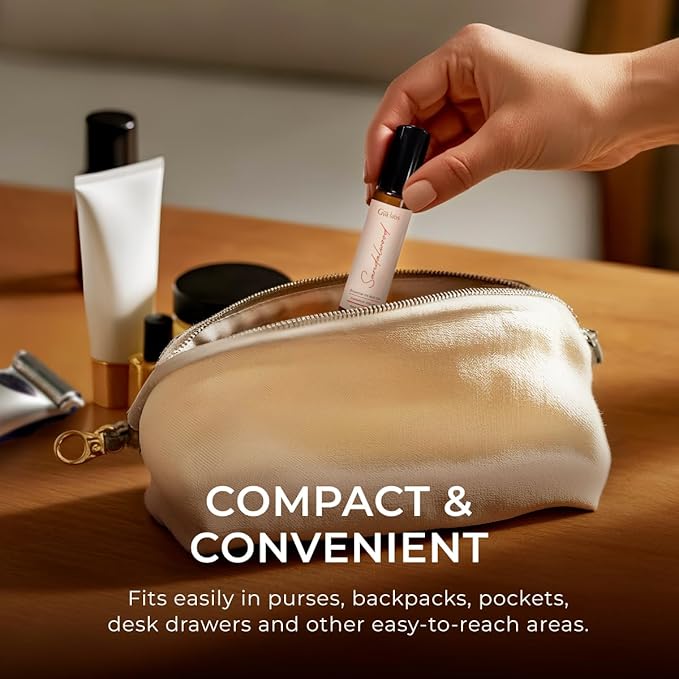 - Super portable & easy to use: Designed for convenience, our sandalwood Essential oil for skin roll on fits in small compartments such as pockets. Unleash the calming essence of sandalwood essential oil perfume wherever you go with an easy swipe.