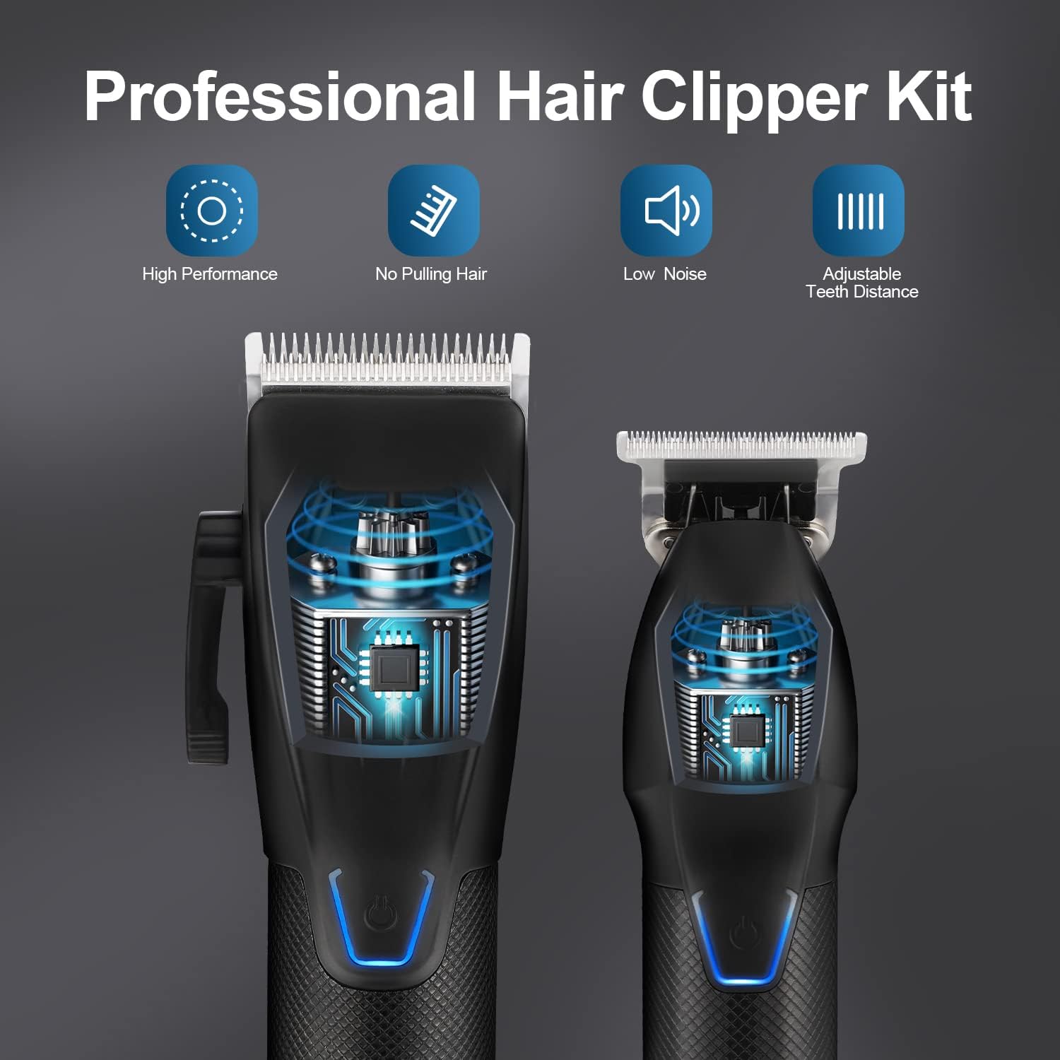 Professional Hair Clippers Trimmer Kit,Cordless Hair Clippers for Men,Barber Fading Clipper and Zero Gap T-Blade Trimmer Set with LED Display for Mens Gifts (Black)