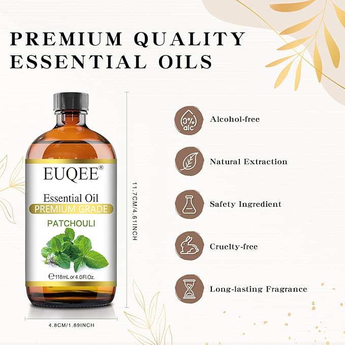 Patchouli Essential Oil 118ml Patchouli Oil with Glass Dropper for Diffuser, DIY Soap, Candle Making - 4Fl Oz