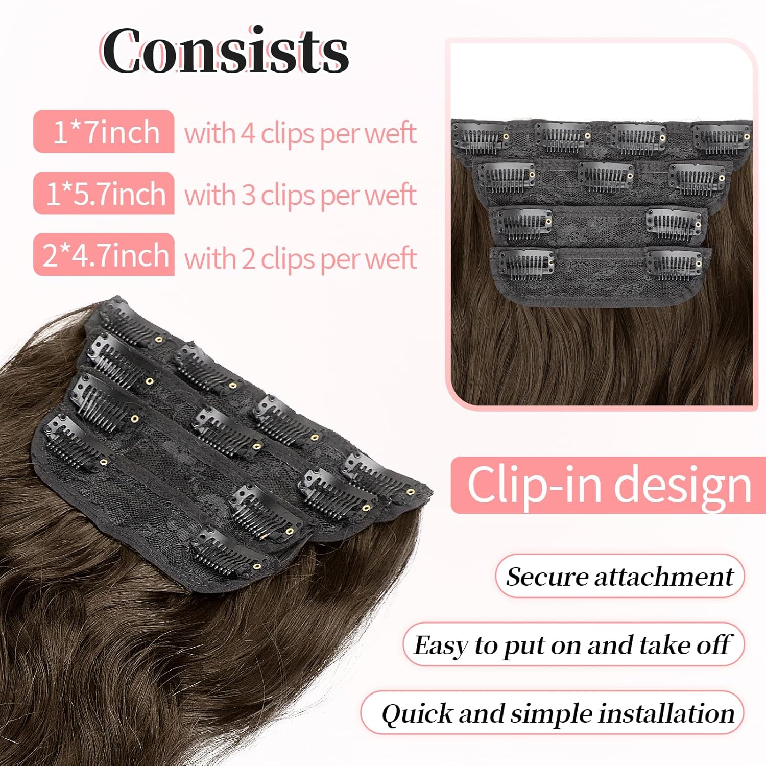 KooKaStyle Clip in Synthetic Hair Extensions Long Wavy 4PCS Thick Hairpieces Chestnut Brown Fiber Double Weft Natural Hair Extensions 20 Inch for Women
