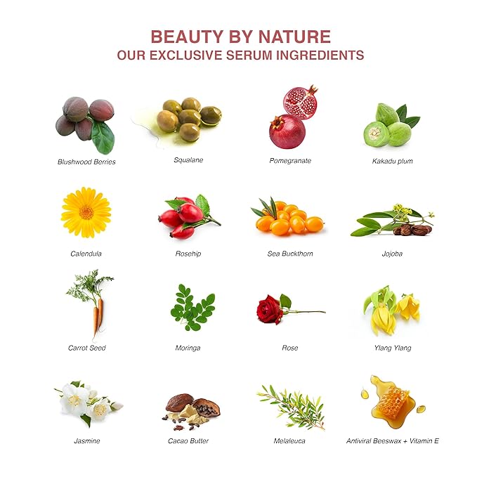 - CAREFULLY SELECTED BEAUTIFYING BLEND of natural, unrefined, cold-pressed, organic botanicals infused with free-radical fighting, cell-defending Blushwood Berry EBC-46, High Vitamin-C Kakadu Plum, and Antioxidant-rich Pomegranate.