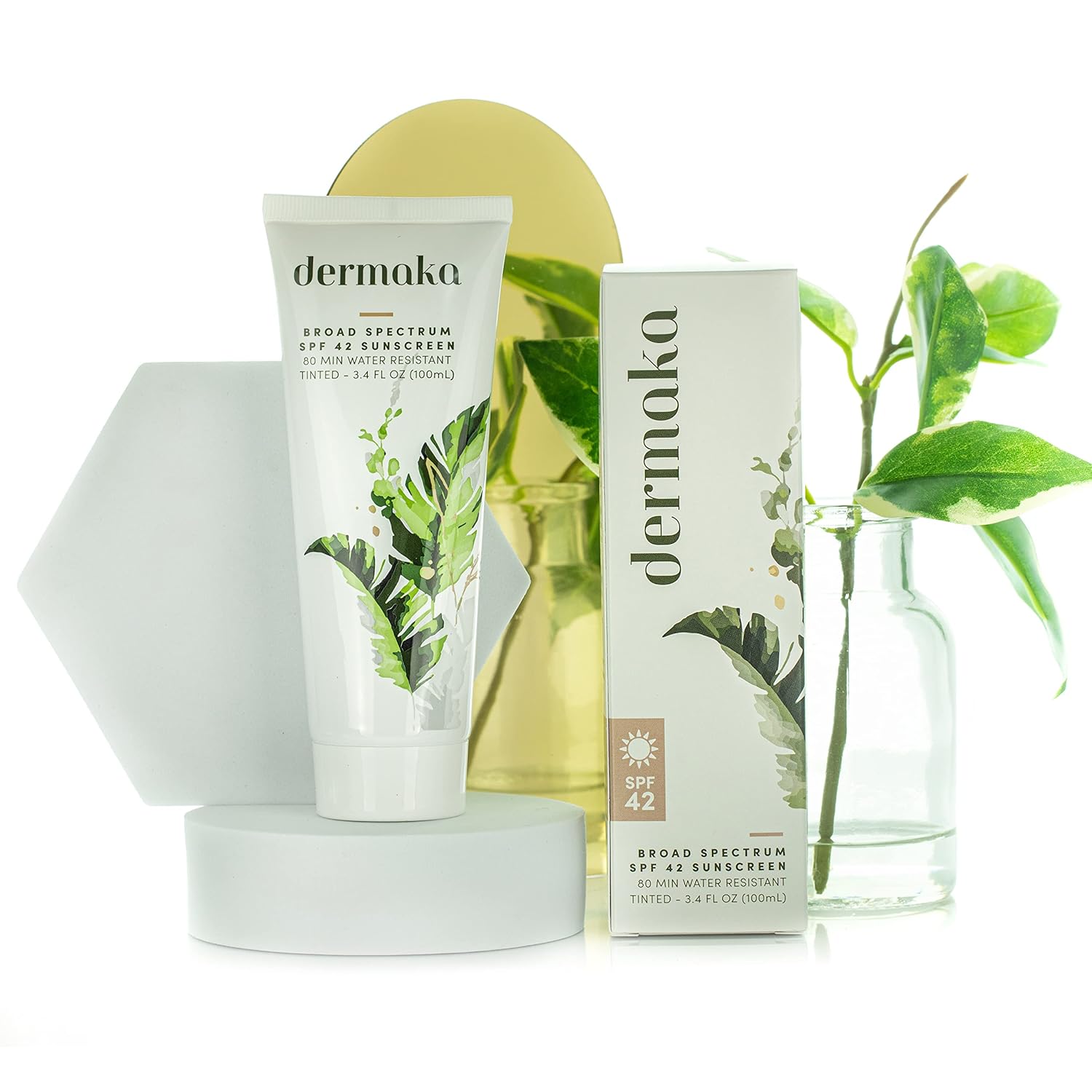 Dermaka Sunscreen SPF 42 for Face & Body – 2-in-1 Lightly Tinted Mineral Sunscreen with Zinc Oxide & Titanium Dioxide – Skin Soothing, Water-Resistant 80 Min, 3.4 oz