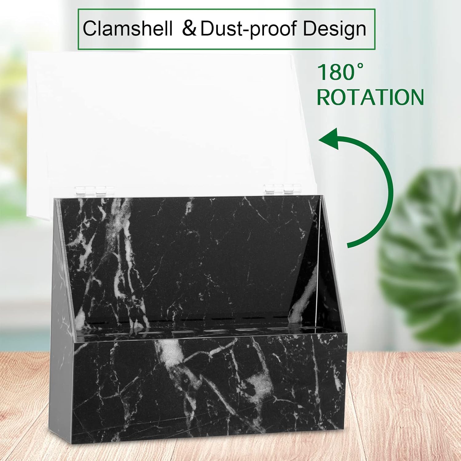 8 Holes Dust-proof Eyelash Tweezers Holder Case Acrylic Marble Tweezer Stand Display Organizer with Cover for Lash Extensions (black)