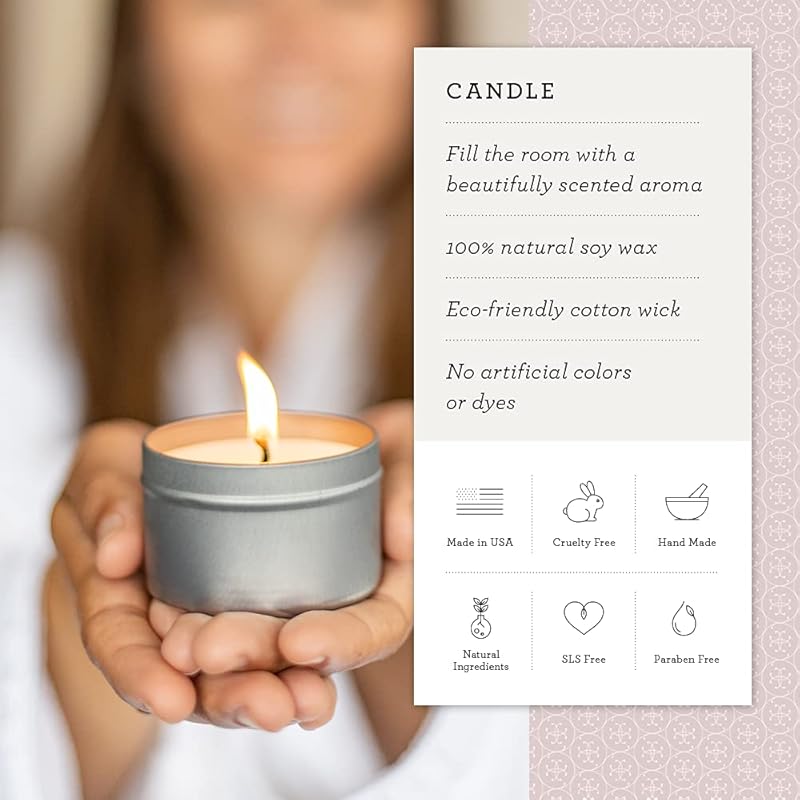 - INCLUDES: All-natural bath set includes: ❀ Scented Candle ❀ Lavender Natural Soap Bar ❀ Clay Facial Mask ❀ Unscented Lip Balm ❀ Eye mask ❀ Door Hang Tag - "Pampering in service" ❀ Gorgeous elegant box (5*5*3) ❀ Beautiful message card. All items are handmade all natural in the USA.
