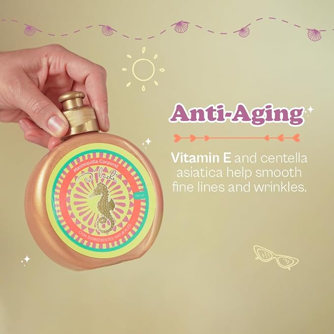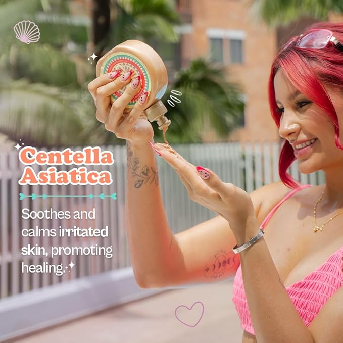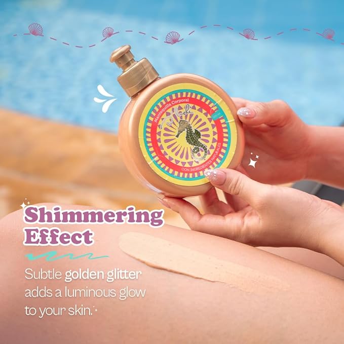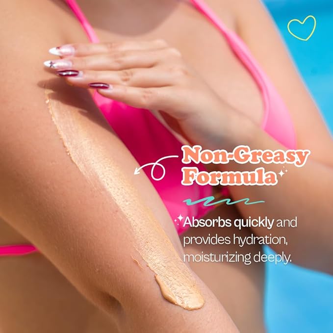 - Golden Glitter Highlight: Elevate your tanned skin tone with a touch of glamour. Our body butter features golden glitter that adds a subtle glow, perfect for enhancing your natural tan and leaving you with a luminous finish.