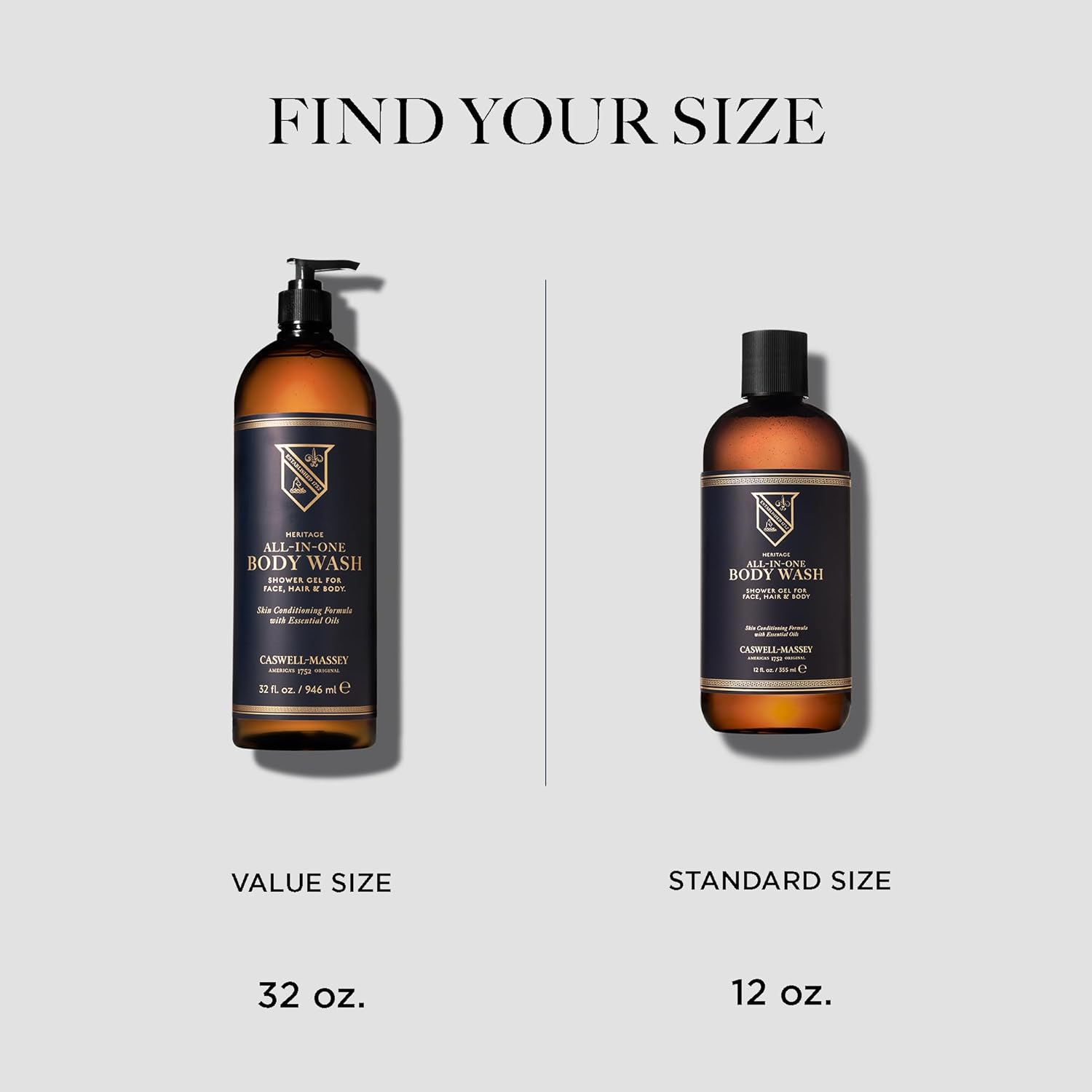 Caswell-Massey Heritage All-in-1 Body Wash, Use as a Face Wash, Beard Wash, Shampoo, Body Wash & Shave Gel, Signature Heritage Soap for Men, 12 Fl Oz Made in USA