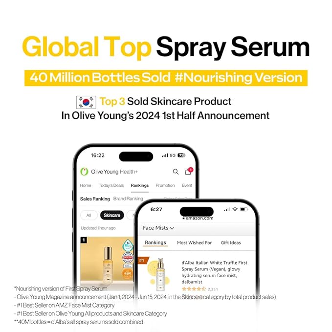 d'alba Piedmont Italian White Truffle First Aromatic Spray Serum, Fragrant VEGAN Glowy Antioxidant Face Mist, Deep Hydration Skin Firmness, Korean Skin Care (2.02 fl.oz)