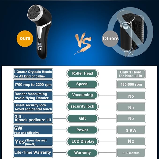 Electric Callus Remover for Feet with Vacuum, Professional Pedicure Tools Kit, Rechargeable Waterproof Foot File for Foot Care Deadskin Remover with 3Heads&2Speed,LCD Display