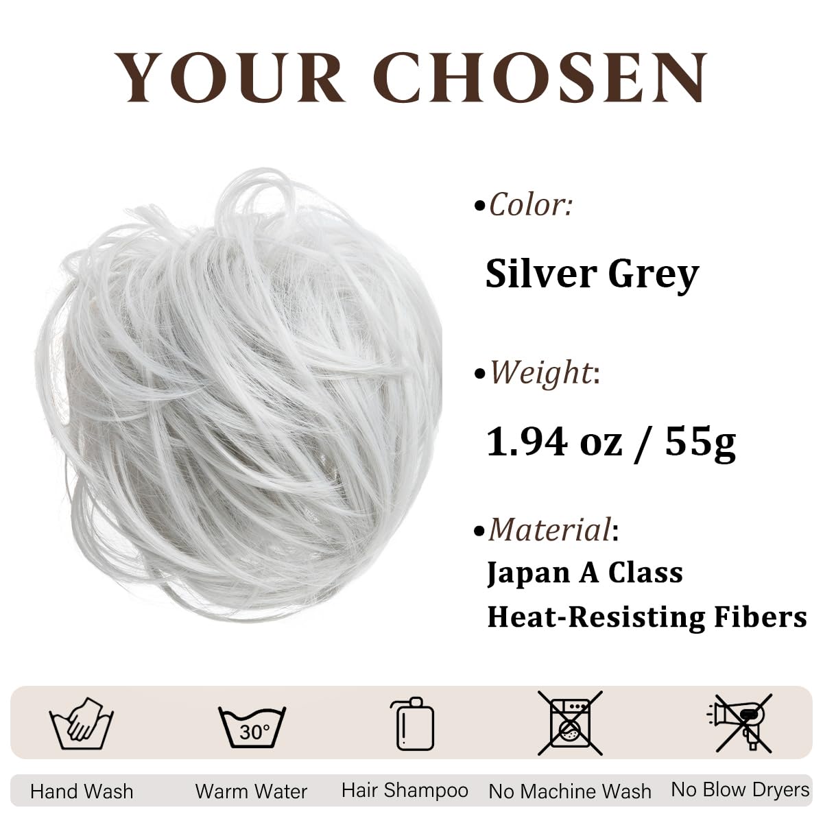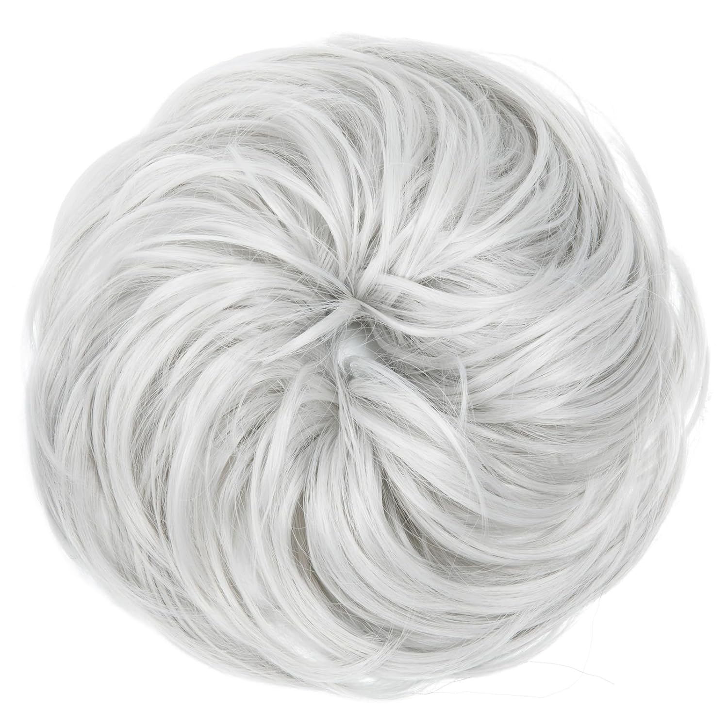 CJL HAIR Large Messy Bun Hair Piece Wavy Curly Scrunchies Synthetic Chignon Ponytail Hair Extensions Thick Updo Hairpieces for Women Light Silver Grey
