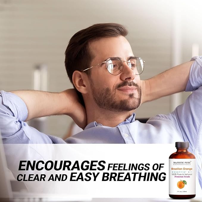 MAJESTIC PURE Brazilian Orange Essential Oil | 100% Pure and Natural Brazilian Oil | Premium Grade Essential Oils for Hair Care, Home Diffusers, Skin, Aromatherapy, Massage and Humidifiers | 1 Fl Oz