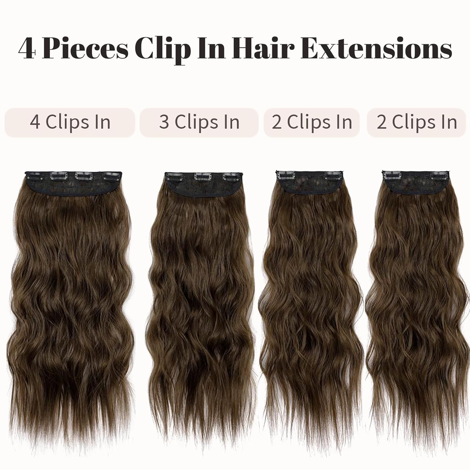 KooKaStyle Clip in Synthetic Hair Extensions Long Wavy 4PCS Thick Hairpieces Chestnut Brown Fiber Double Weft Natural Hair Extensions 16 Inch for Women