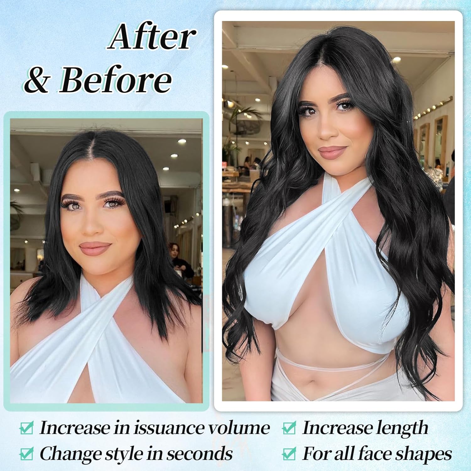 - ๐ธใAfter Wearing Effectใ--It can make your hair look very real like your own hair. And this Hair Extension can make your hair look longer, thicker, which is very easy to wear. You can trim and reshape your hair style according to your own hair length.