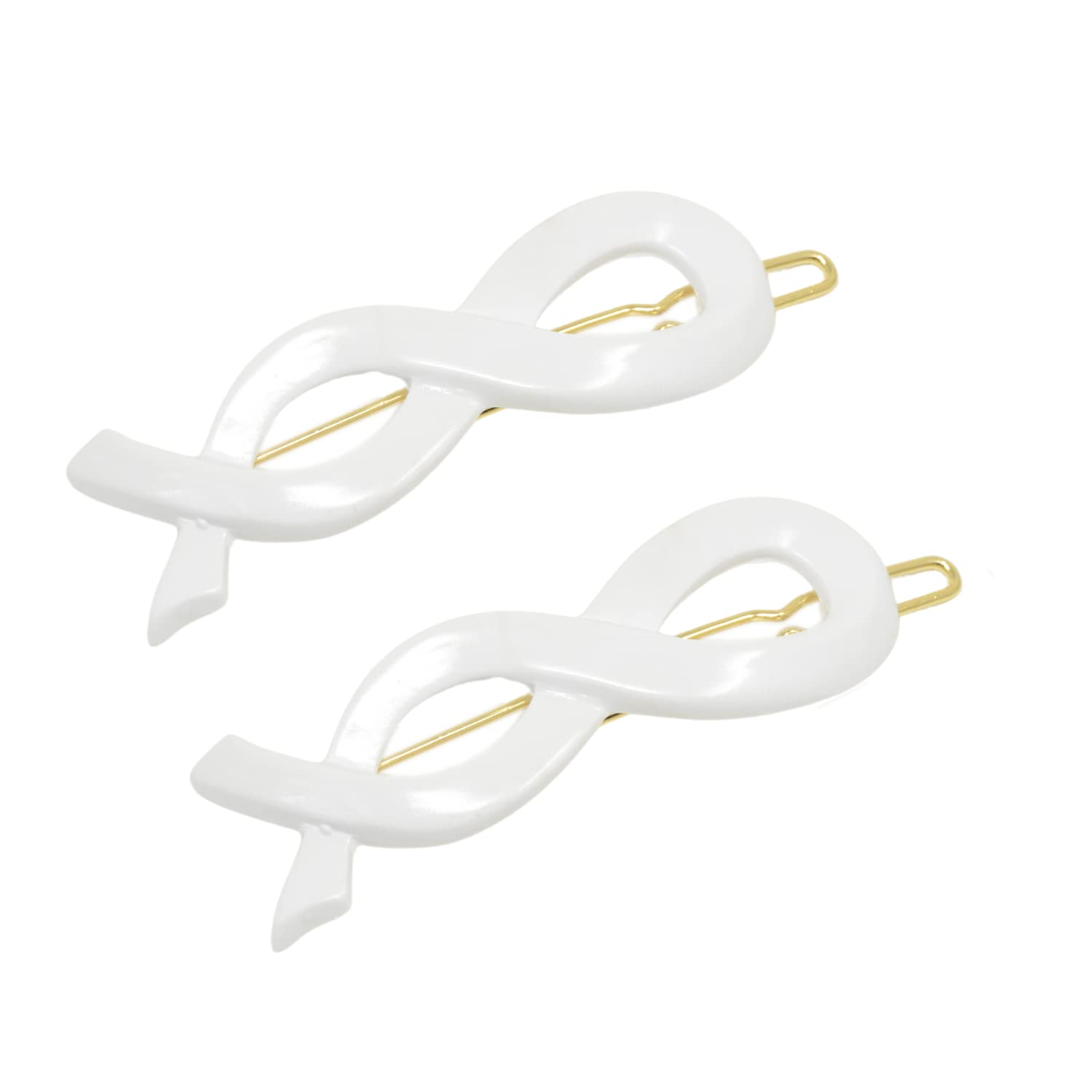 Parcelona French Infinity Ribbon Small 2 1/4" Celluloid French Hair Slides Clips for Women Tige Boule Clasp Girls Side Slide-in Barrette Clip Paris Hair Accessories for Women Strong Hold No Slip Grip Fashion Durable Styling, Made in France (Solid White)