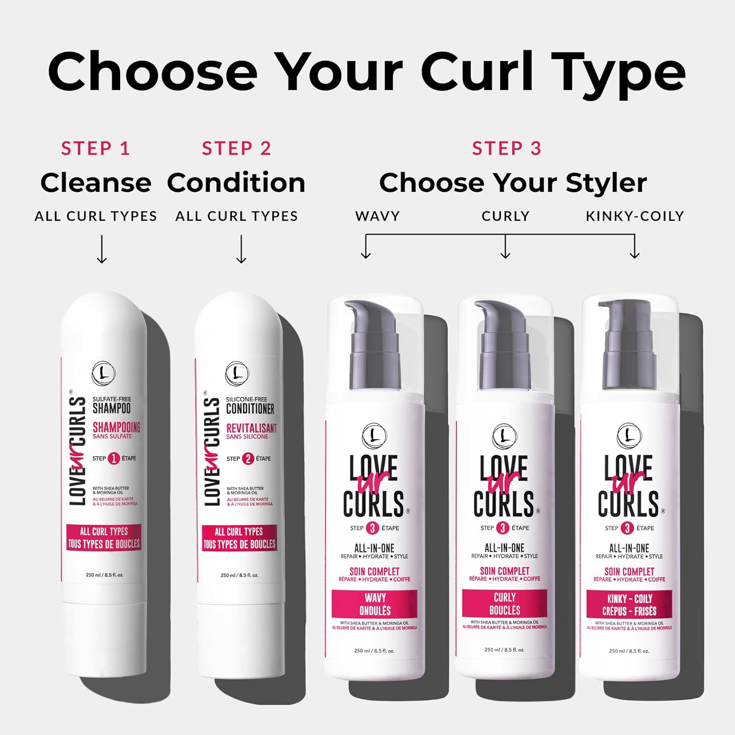Love Ur Curls - Shampoo & Conditioner Set with All in One Curl Cream Styler for Curly Hair, 3 Step System for Repair and Moisturizing