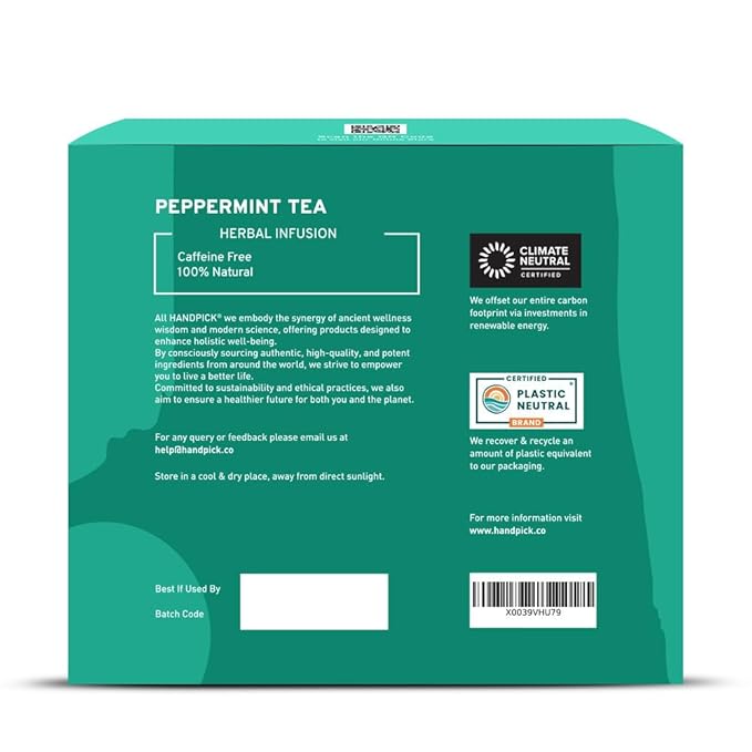 HANDPICK, Peppermint Tea, Eco-Conscious Tea Bags - 100 Count | Caffeine Free, Non-GMO | Minty, Fresh & Cool flavor | Direct From Source