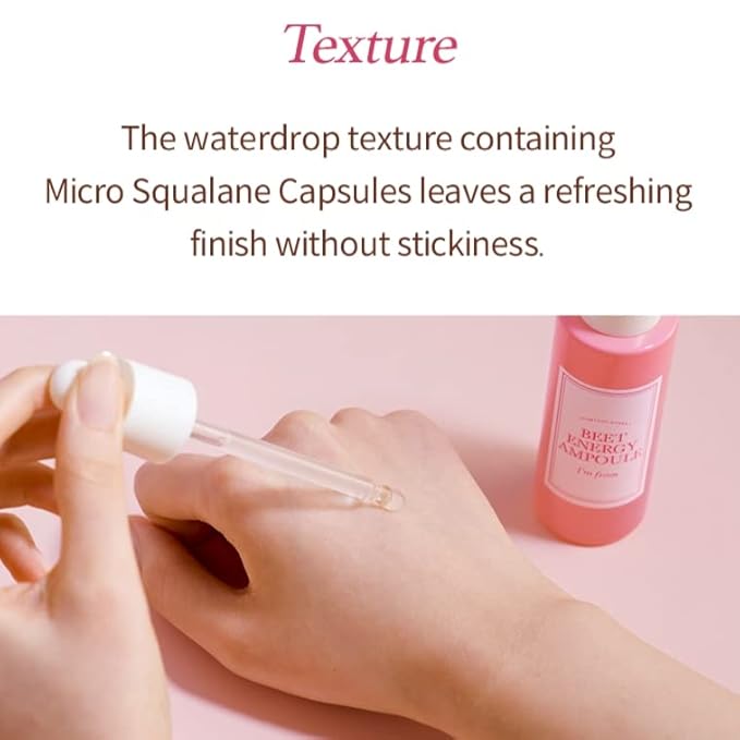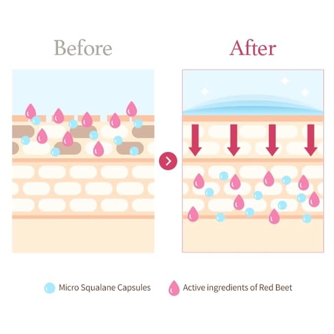 - ๐ DEEP NOURISHMENT WITH MICRO SQUALENE CAPSULES: Micro Squalane Capsules in this ampoule nourish deep inside the skin. The active ingredients of red beet and skin-friendly plant-derived Micro Squalane Capsules penetrate deeply, providing radiance and nourishment. The waterdrop texture with Micro Squalane Capsules leaves a refreshing finish without stickiness.