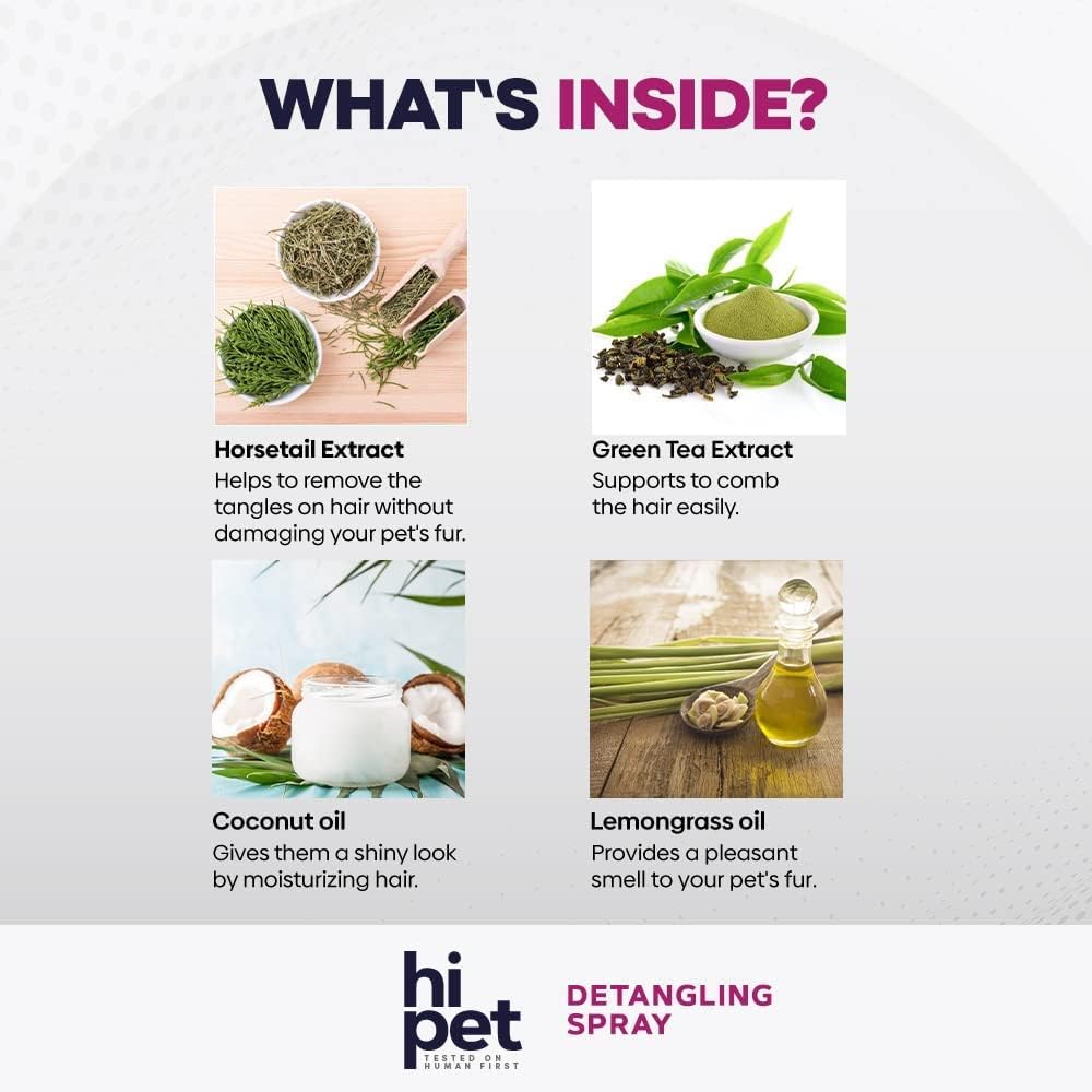 - LEAVE IN CONDITIONER - At the same time, HiPet cat and dog detangler spray moisturizes and nourishes your pet's fur.