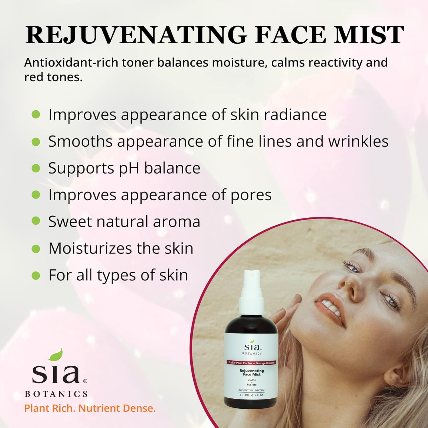 Sia Botanics Rejuvenating Face Toner Mist (118ml/4oz Bottle) | Facial Treatment w/Prickly Pear, Aloe Vera, Orange Blossom | Natural, Clean, Botanical Skincare for Women