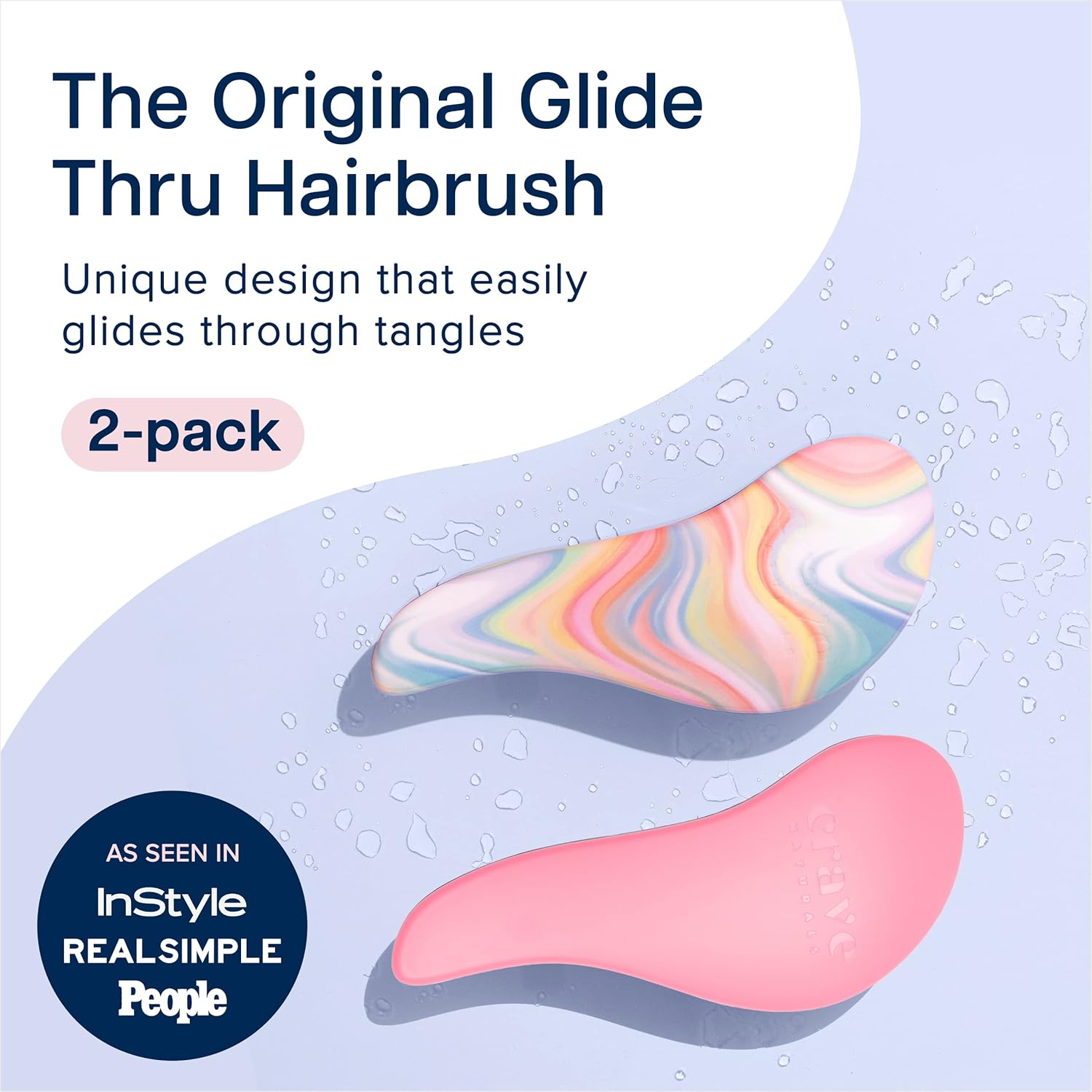 Crave Naturals Glide Thru Detangler Brush Pack of 2 - Curly Hair Brush for Women and Kids - Wet and Dry Comb for Adults - Soft Flexible Bristles for Gentle Use - Pink and Soft Hazy Swirl