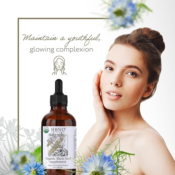 HBNO Organic Black Seed Oil 4 fl oz (120ml) - USDA Certified Organic Black Seed Oil Organic Cold Pressed - Natural Black Cumin Seed Oil Organic