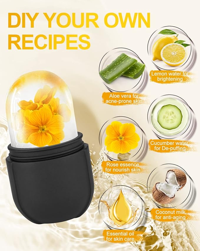 - ๐Creative skin care match - Our face roller ice mold can be customized the recipe creatively according to your skin's needs; lemonade for whitening,green tea for anti-inflammatory, cucumber water for de-puffing and anti-aging effects of coconut milk, aloe vera is suitable for acne-prone skin and sunburn, rose water to tighten pores, and can also be used with essential oils.