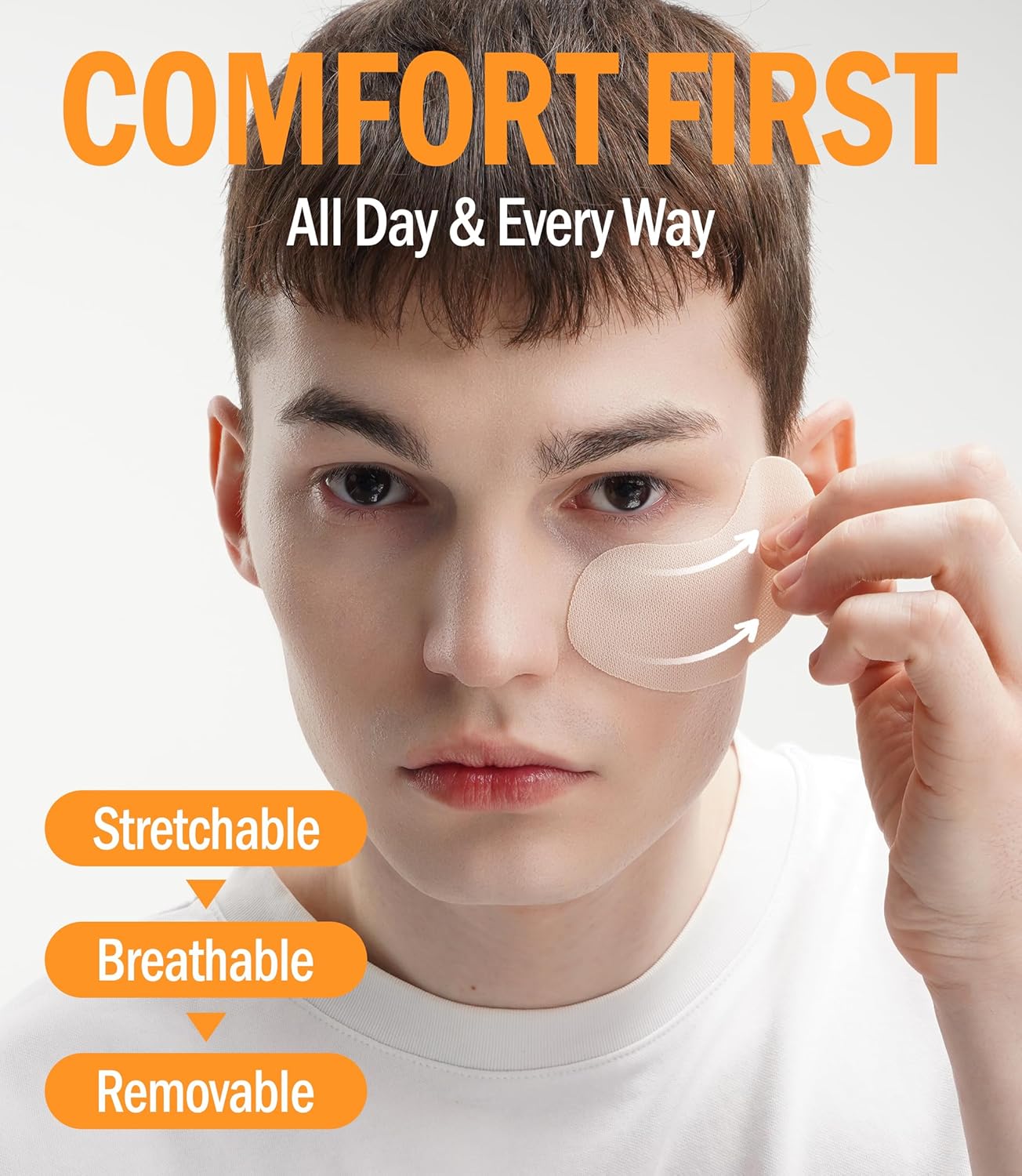 - 360-DEGREE FLEXIBILITY. Our expansive sun shield patch serves as your ultimate defense against harsh ultraviolet rays, offering a seamless fit for unparalleled coverage. Wrapping around the high-exposure cheek area, our elastic banding fabric gives steadfast adhesion, even during movement.