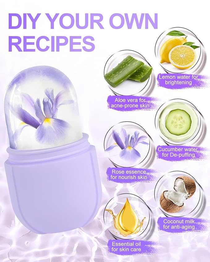 - ๐Creative skin care match - Our face roller ice mold can be customized the recipe creatively according to your skin's needs; lemonade for whitening,green tea for anti-inflammatory, cucumber water for de-puffing and anti-aging effects of coconut milk, aloe vera is suitable for acne-prone skin and sunburn, rose water to tighten pores, and can also be used with essential oils.
