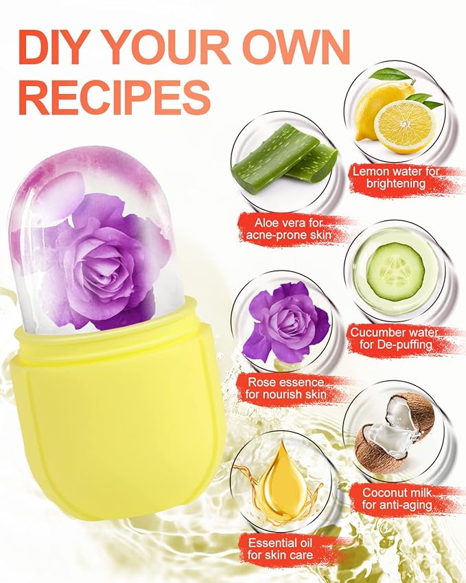 - ๐Creative skin care match - Our face roller ice mold can be customized the recipe creatively according to your skin's needs; lemonade for whitening,green tea for anti-inflammatory, cucumber water for de-puffing and anti-aging effects of coconut milk, aloe vera is suitable for acne-prone skin and sunburn, rose water to tighten pores, and can also be used with essential oils.