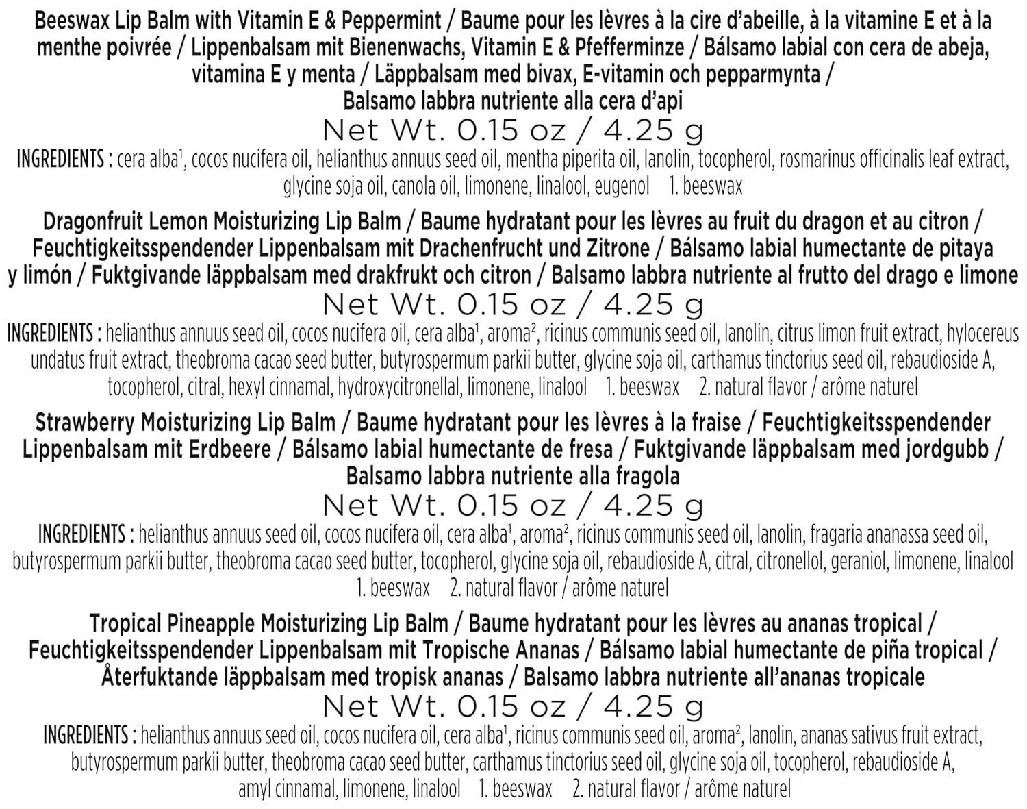 - FOUR FLAVORS: With four flavors, including Beeswax, Dragonfruit Lemon, Strawberry and Tropical Pineapple, this lip balm is a perfect gift for holidays like Valentine's Day, Easter and Mother's Day
