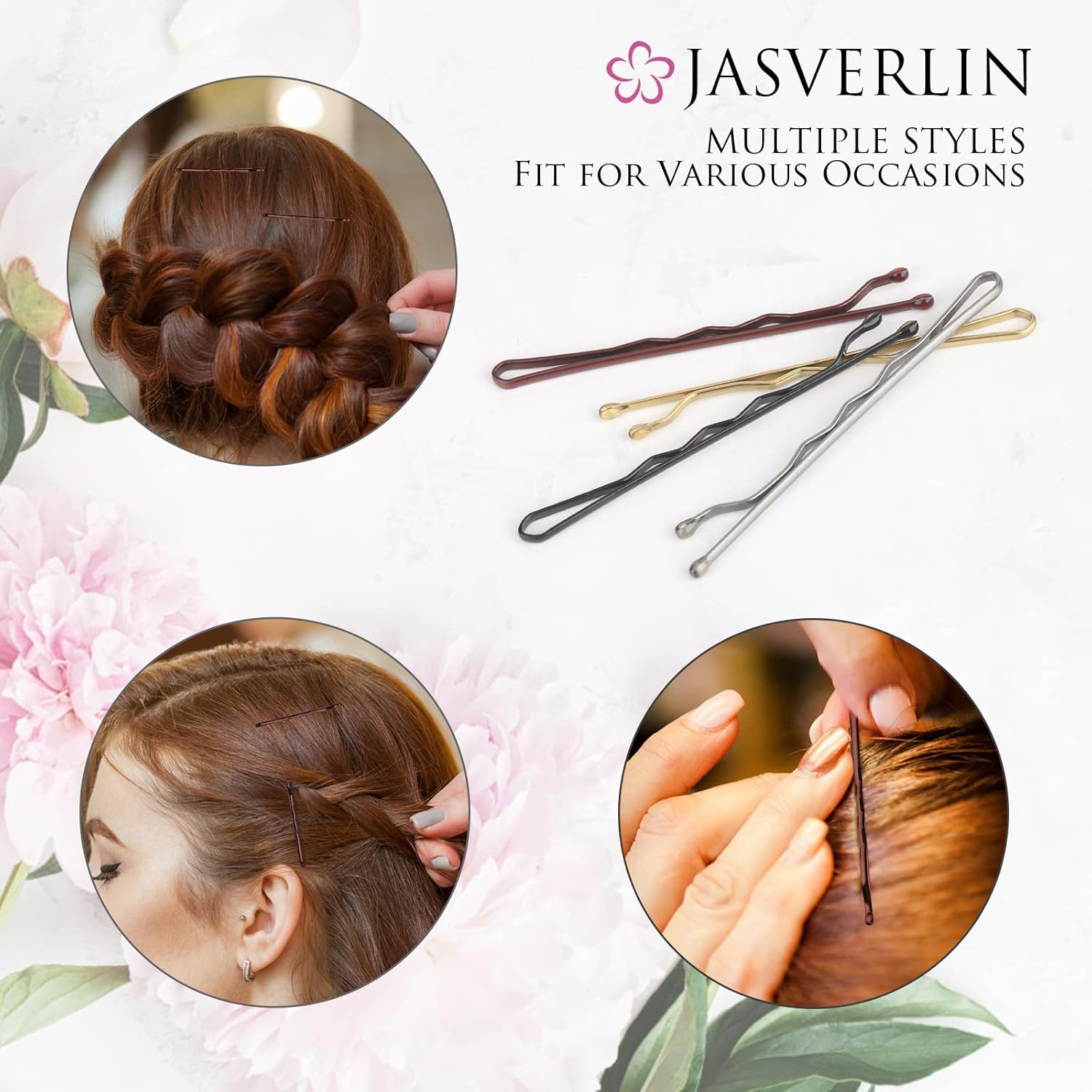 - High Quality: JASVERLIN hair pins are made of premium metal alloy, which enhanced, strong spring with memory retains original shape. The surface is made with brown plating, so pins slide more smoothly through the hair