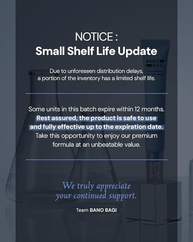 - b-PDRN: Banobagi’s b-PDRN is a premium-grade PDRN derived from sturgeon, known for superior skin absorption and elasticity support. Promotes skin turnover and firmness around the delicate eye area.