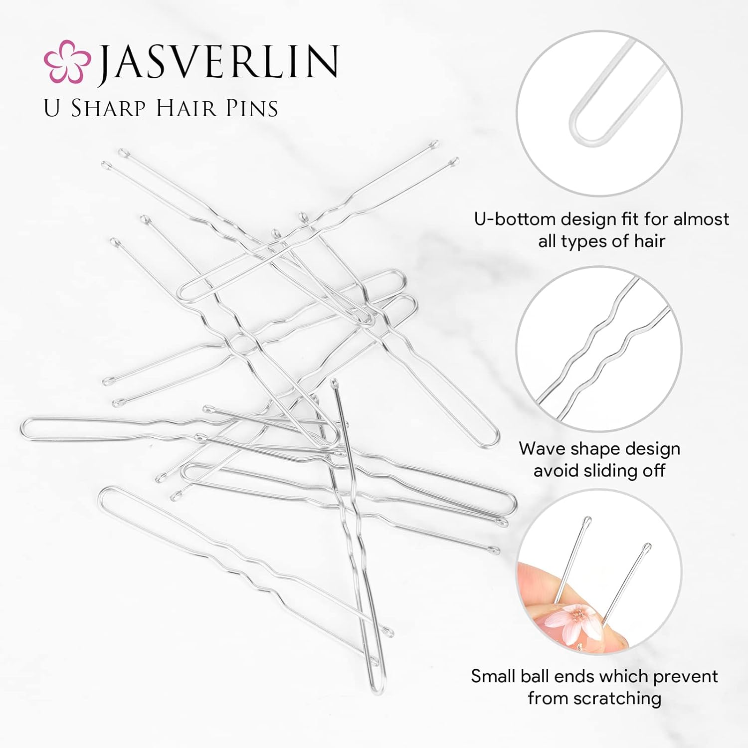 - Premium Material: JASVERLIN Silver U Shaped Hair Pins are made with high quality metal alloy, which enhanced, strong spring with memory retains original shape, can be reused multiple times