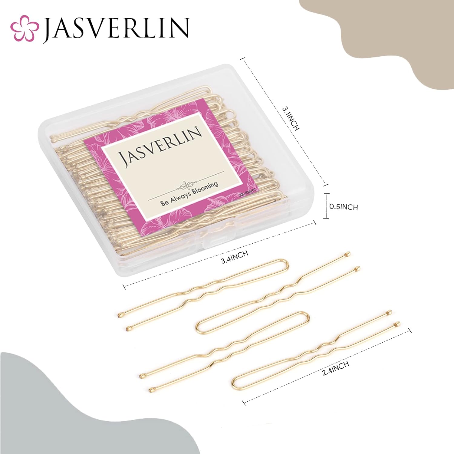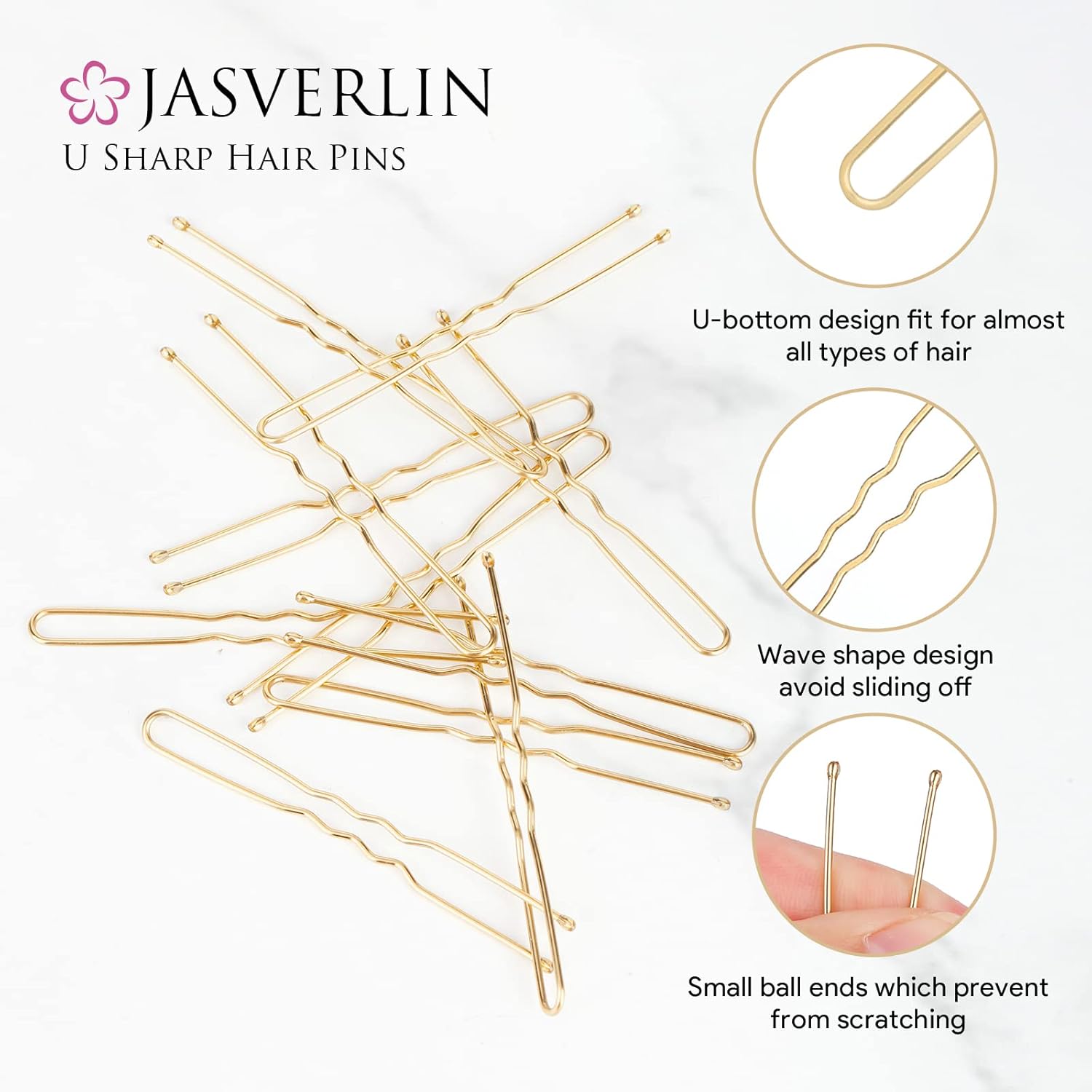 - 2.4" Blonde U-Shaped Hair Pins: JASVERLIN Gold Hair Pins are crafted from high-quality metal alloy with a reinforced memory spring. These bobby pins offer lasting durability and effortlessly retain their shape—ready for reuse again and again