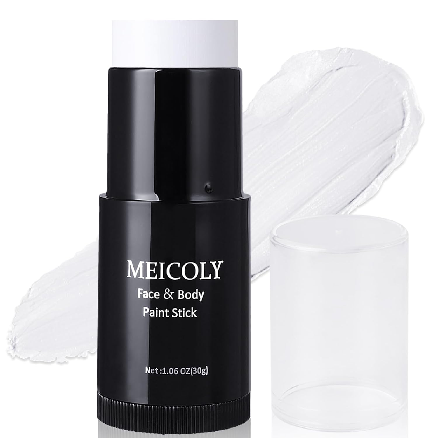 MEICOLY Clown White Face Body Paint Stick(1.06 Oz),Foundation Cream Makeup,Face Paint for Halloween Joker Zombie Vampire Skeleton Skull Special Effects Mime Makeup,White Eye Black Stick for Sports