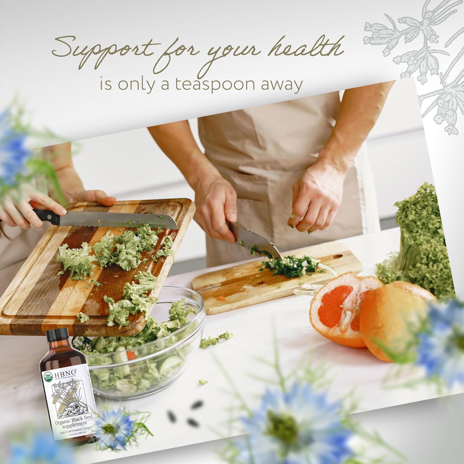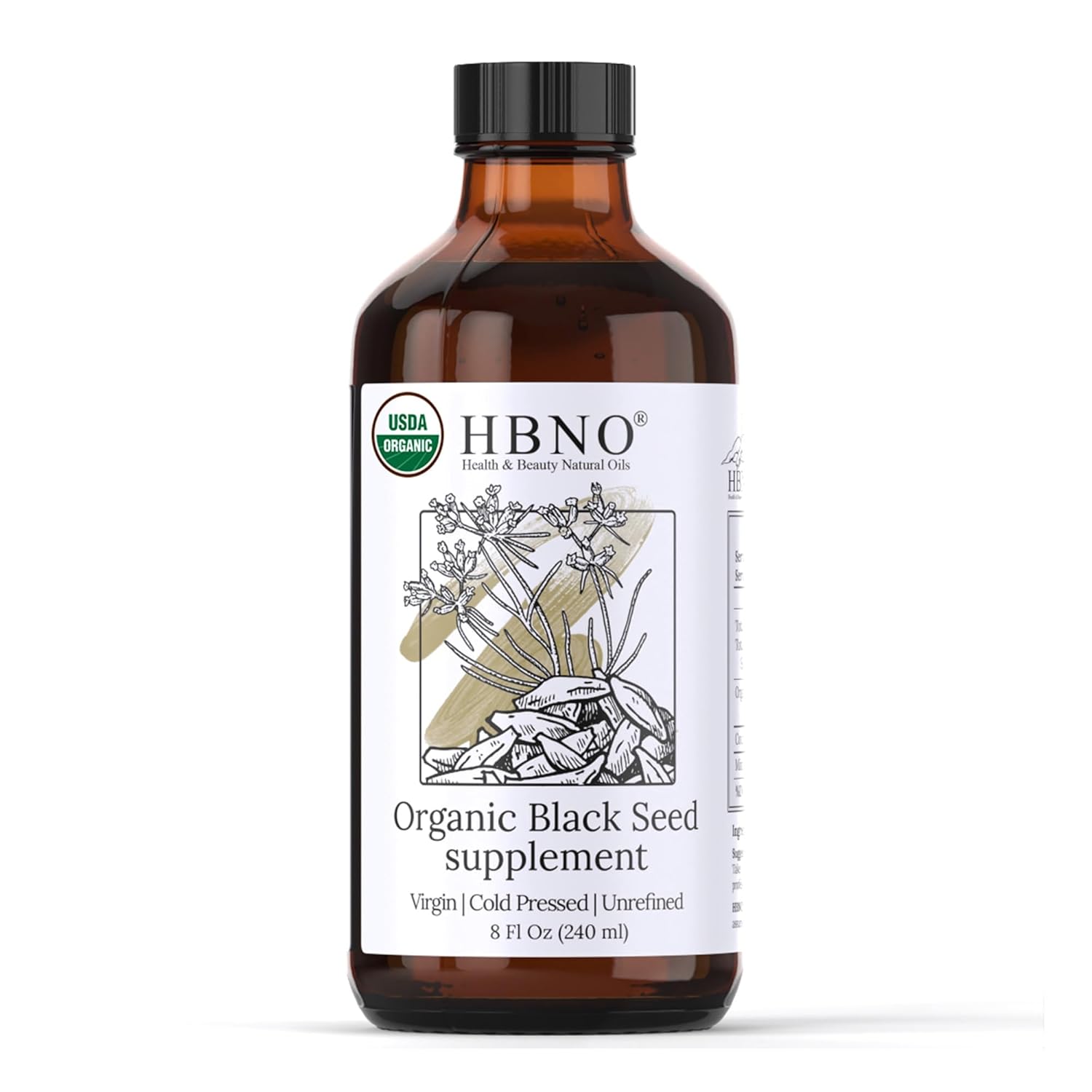 HBNO Organic Black Seed Oil - Huge 8oz (240ml) Glass Bottle Value Size - USDA Certified Organic Black Seed Oil, Cold Pressed for Face, Body, Lips, Shampoo & Conditioner