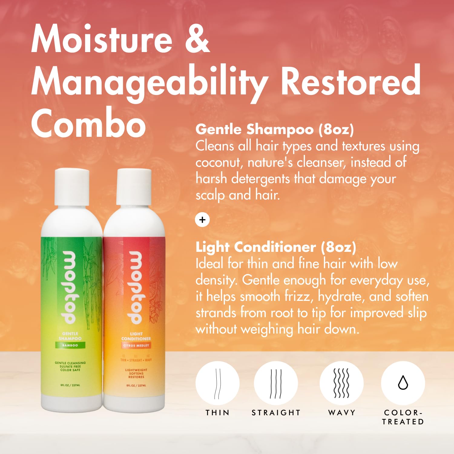 MopTop Lightweight Curly Hair Shampoo and Conditioner Set – Gentle Shampoo + Light Conditioner, Reduces Frizz & Restores Dry Damaged Hair, Sulfate & Paraben Free – Wavy, Curly, Coily, Kinky (Set of 3)