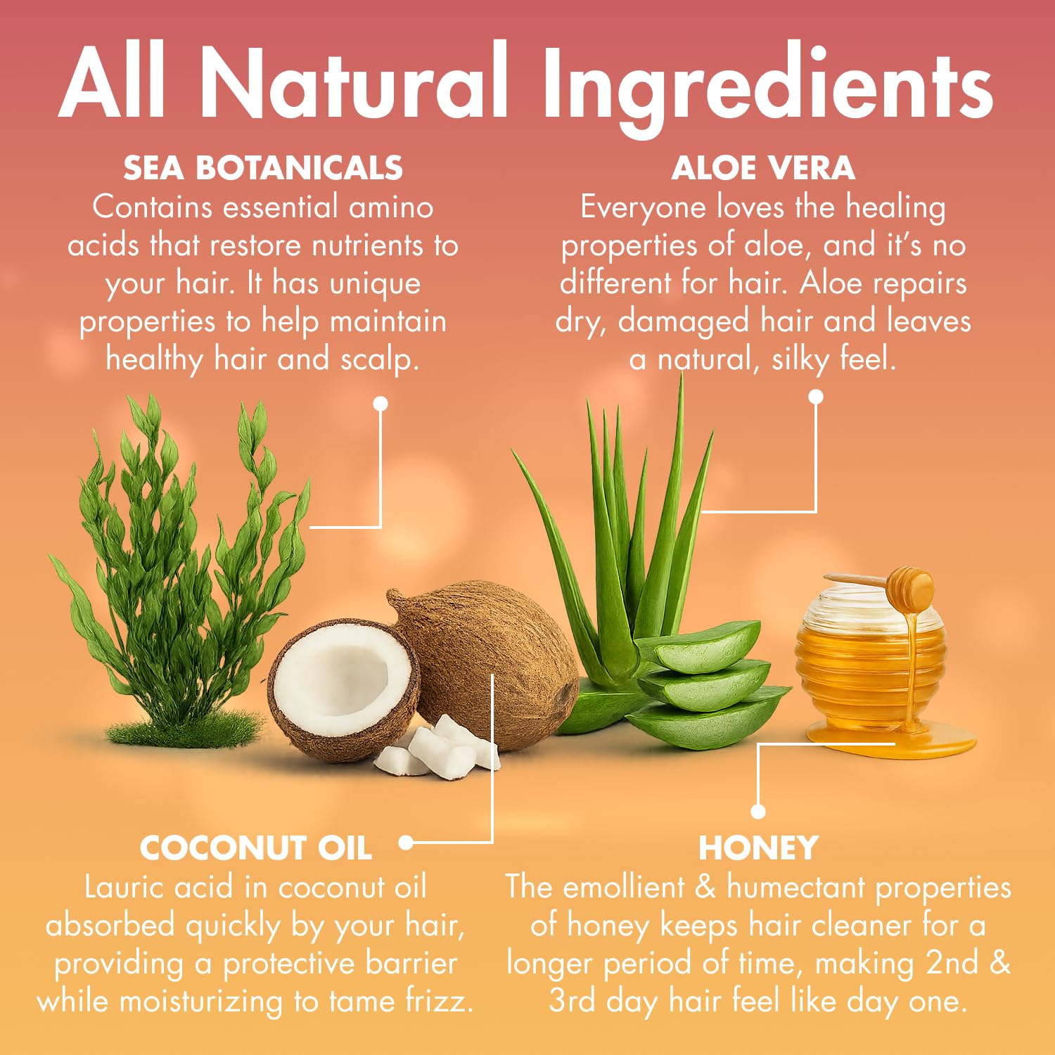 - INFUSED WITH NATURE: This hair shampoo and hair conditioner for women and men are made with powerful botanical ingredients derived from nature, including aloe, sea botanicals, honey, and olive oil, enhancing your hair’s natural shine, slip and softness.