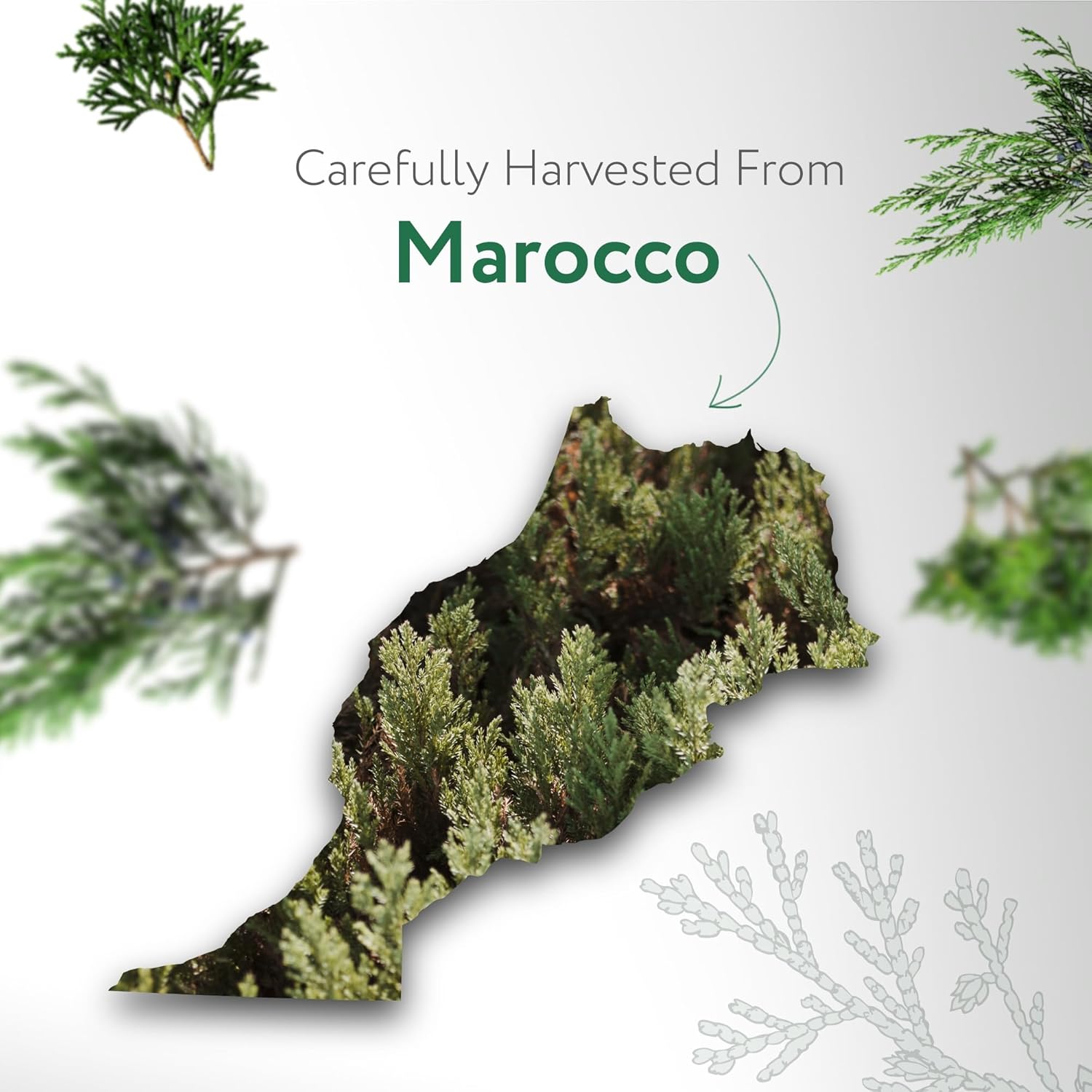 - Premium Quality Organic Cedarwood Oil: This incredible oil is obtained by steam distilling the bark of the cedrus atlantica tree and packaged in an amber glass bottle.