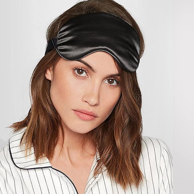 2-Pack 100% Real Natural Silk Eye Mask, Silk Sleeping Mask, Shade Puffy Eye Gift with Adjustable Straps, Sleep Eye Mask, SHJINJU Eye Mask Shade (Black and Black)