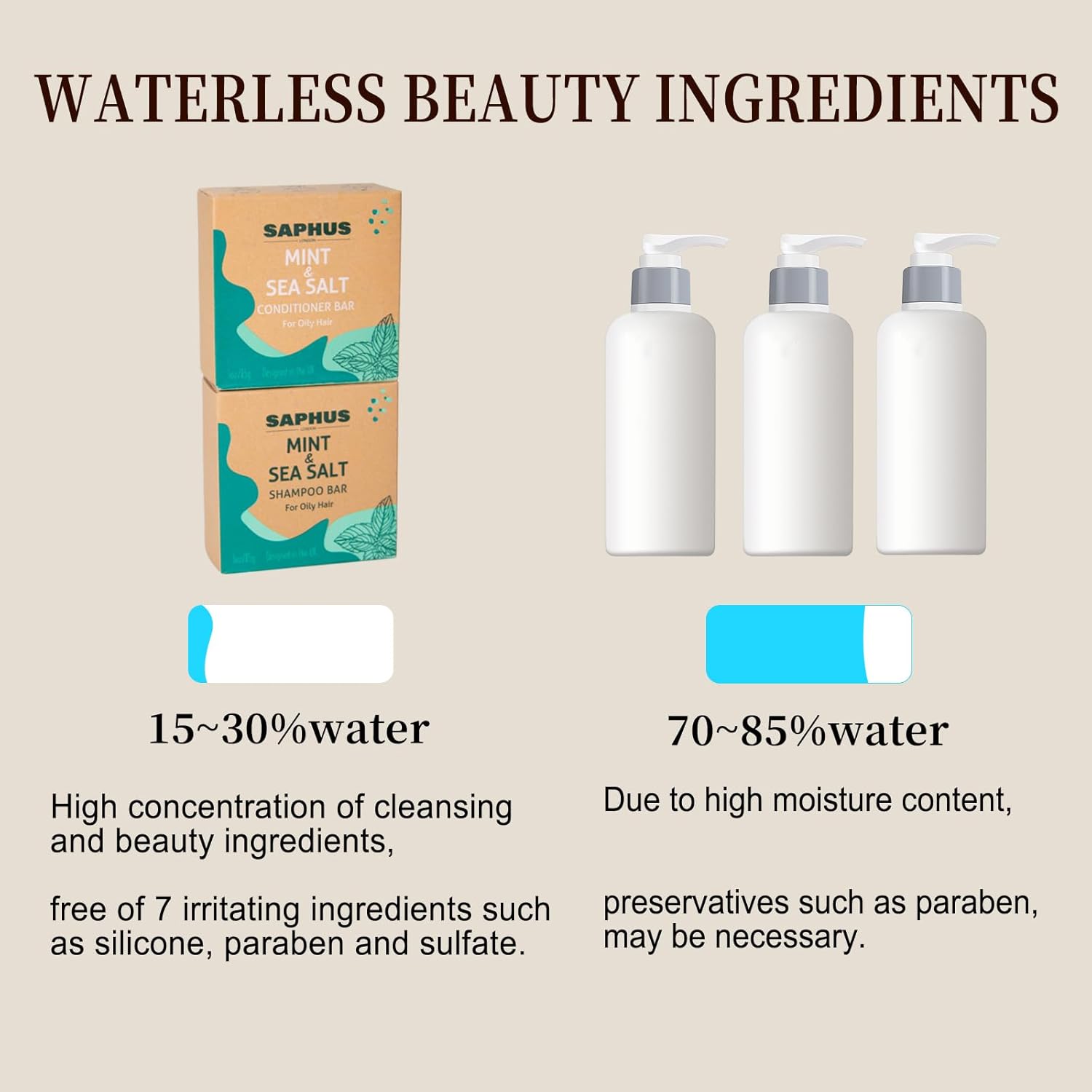 - hair moisturizing & refreshing: shampoo bar soap and conditioner bar contain shea butter, sea salt and many other natural plant ingredients, support the healthy development of hair and scalp, balances oil in scalp, nourishes hair roots, resulting in soft, smooth, shiny hair.