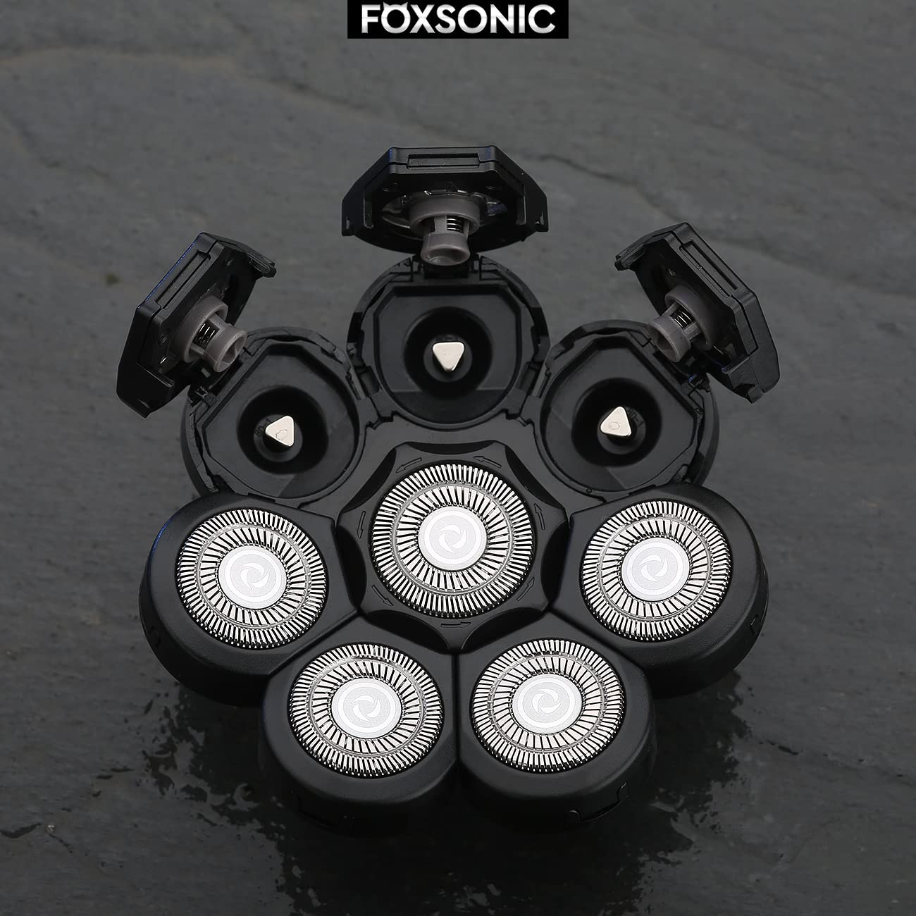 - ★ Foxsonic 8 heads 8 blades men's electric shaver features special electroplate surfaces for anti-abrasion, double-ring hypoallergenic stainless blades. Its 9D flex floating heads rotate to follow the contours of your face, head, neck and jaw, offering closer and cleaner trimming without skin irritation.