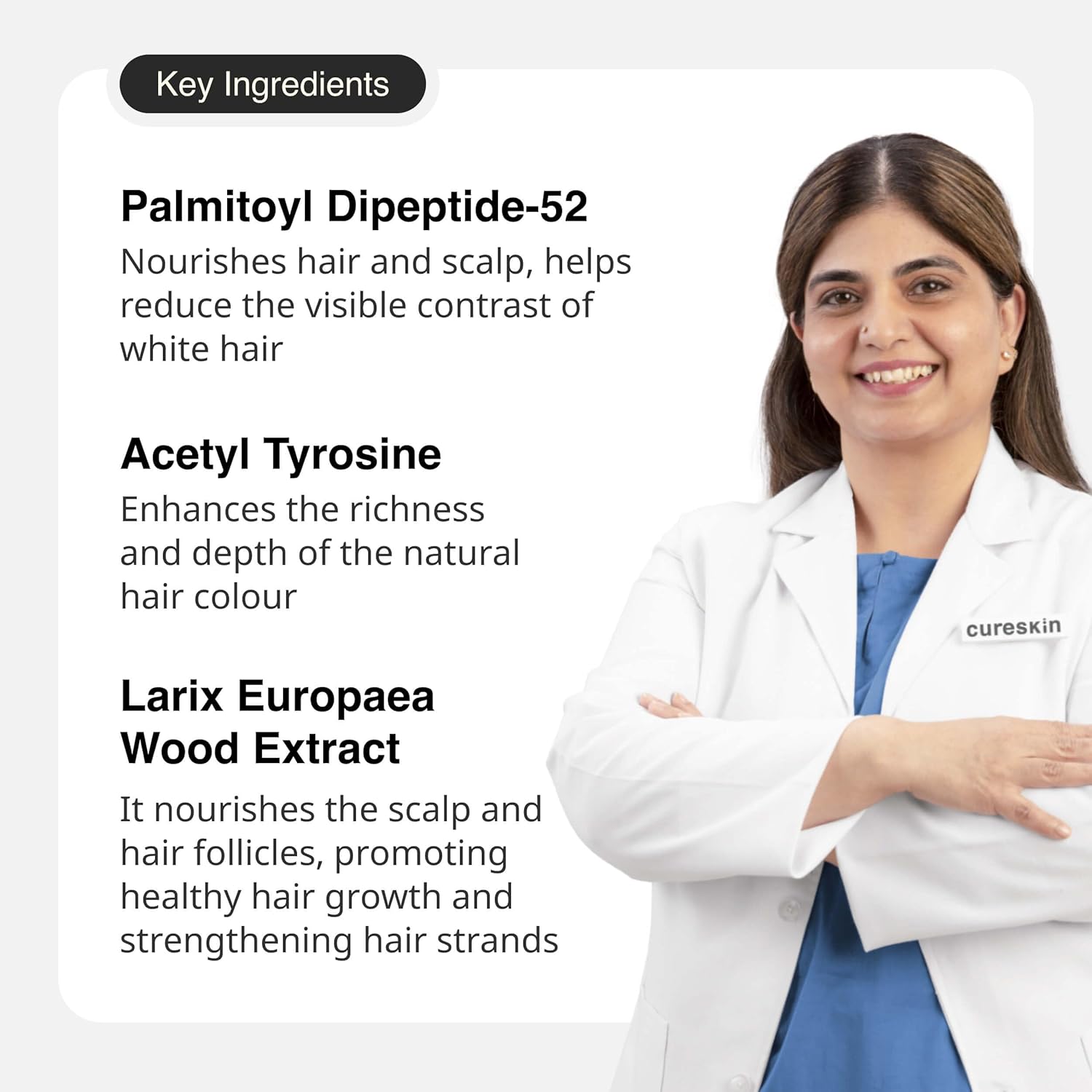 Cureskin Anti Grey Hair Serum | Gradually Reduces Gray Hair on Head & Beard Without Dye | Restores Natural Hair Colour with Peptide-52, Acetyl Tyrosine & Larix Extract | Peroxide & Ammonia Free