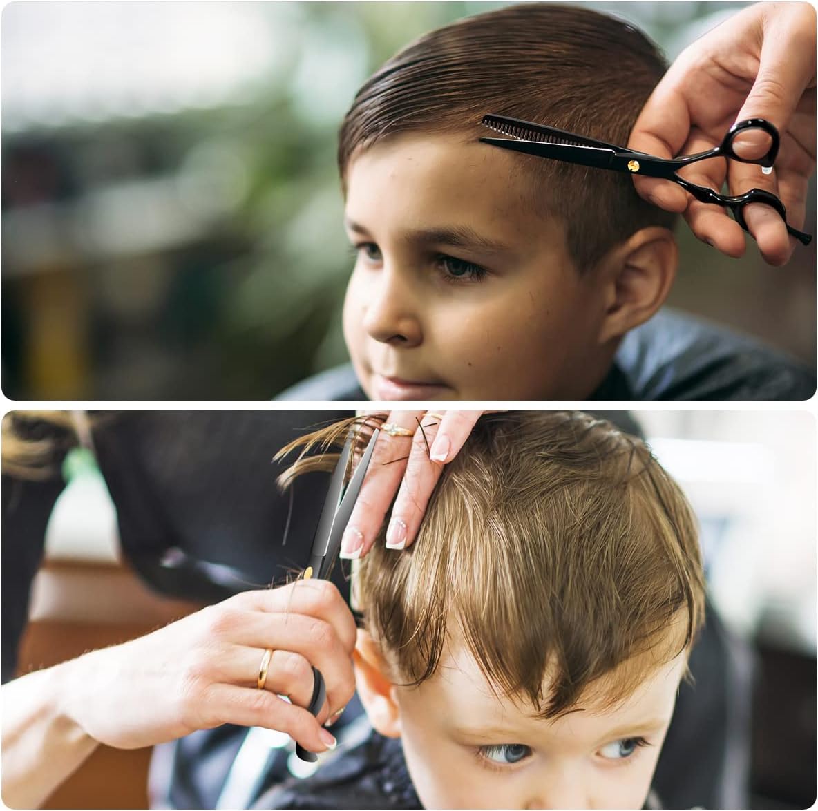 Professional Hair Cutting Scissors Sets Stainless Steel Barber Hairdressing Scissors Multifunctional Salon Thinning Scissors Straight Shears Tools Gifts for Mom Dad and Friends (Black)